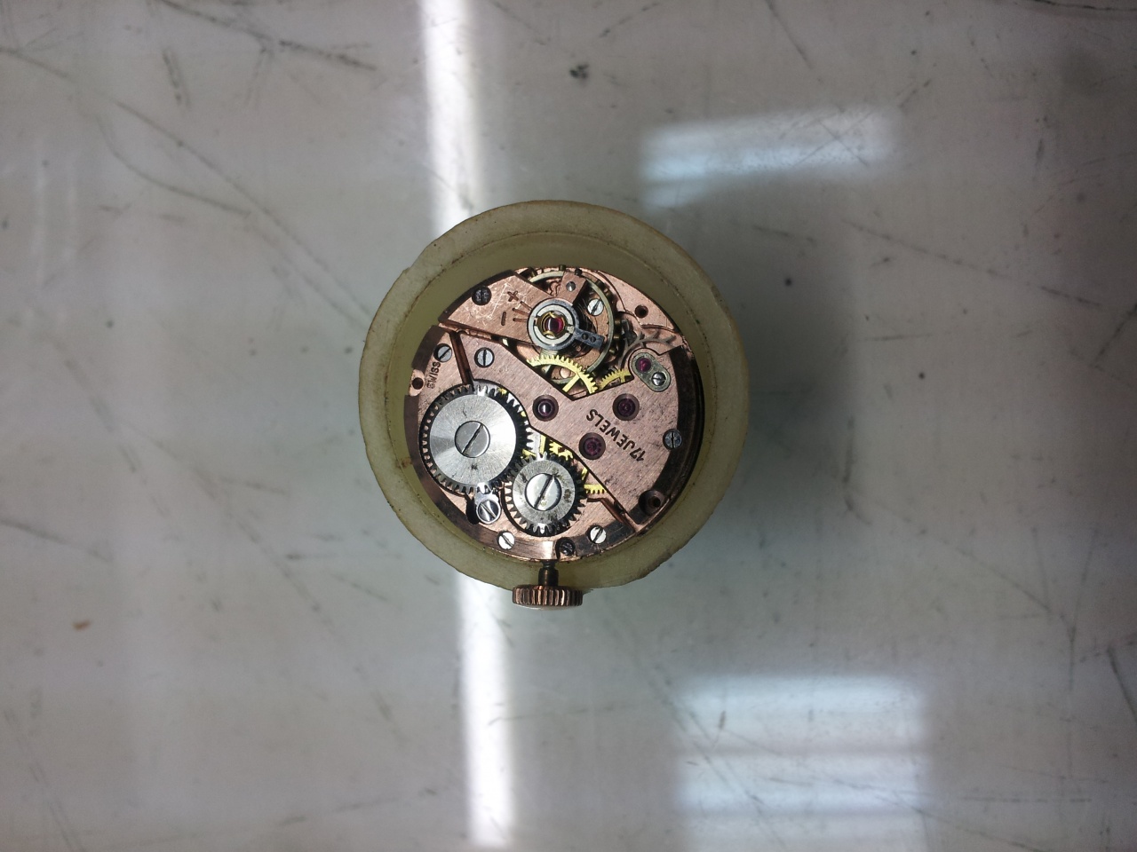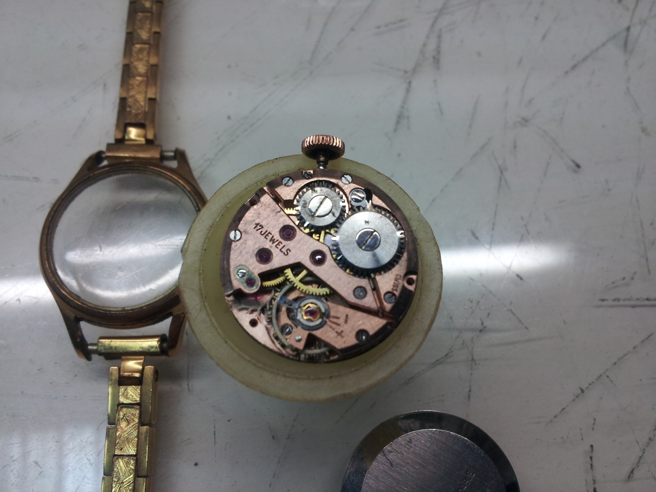 Написано made Swiss. Говорят что механизм похож на Omega, напыление из розового золота, а на какую модель омеги непонятно