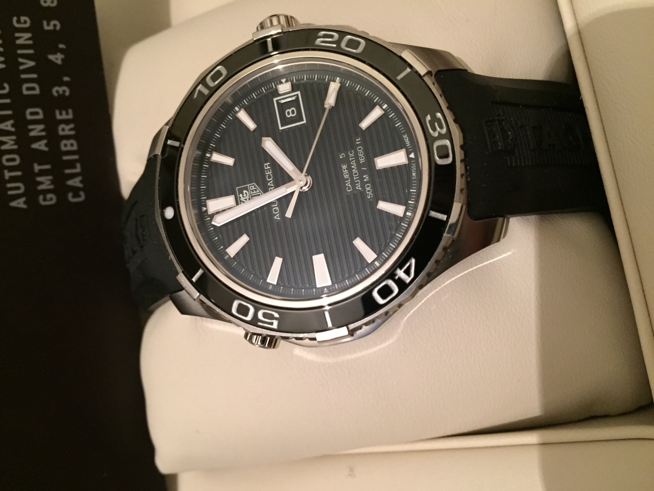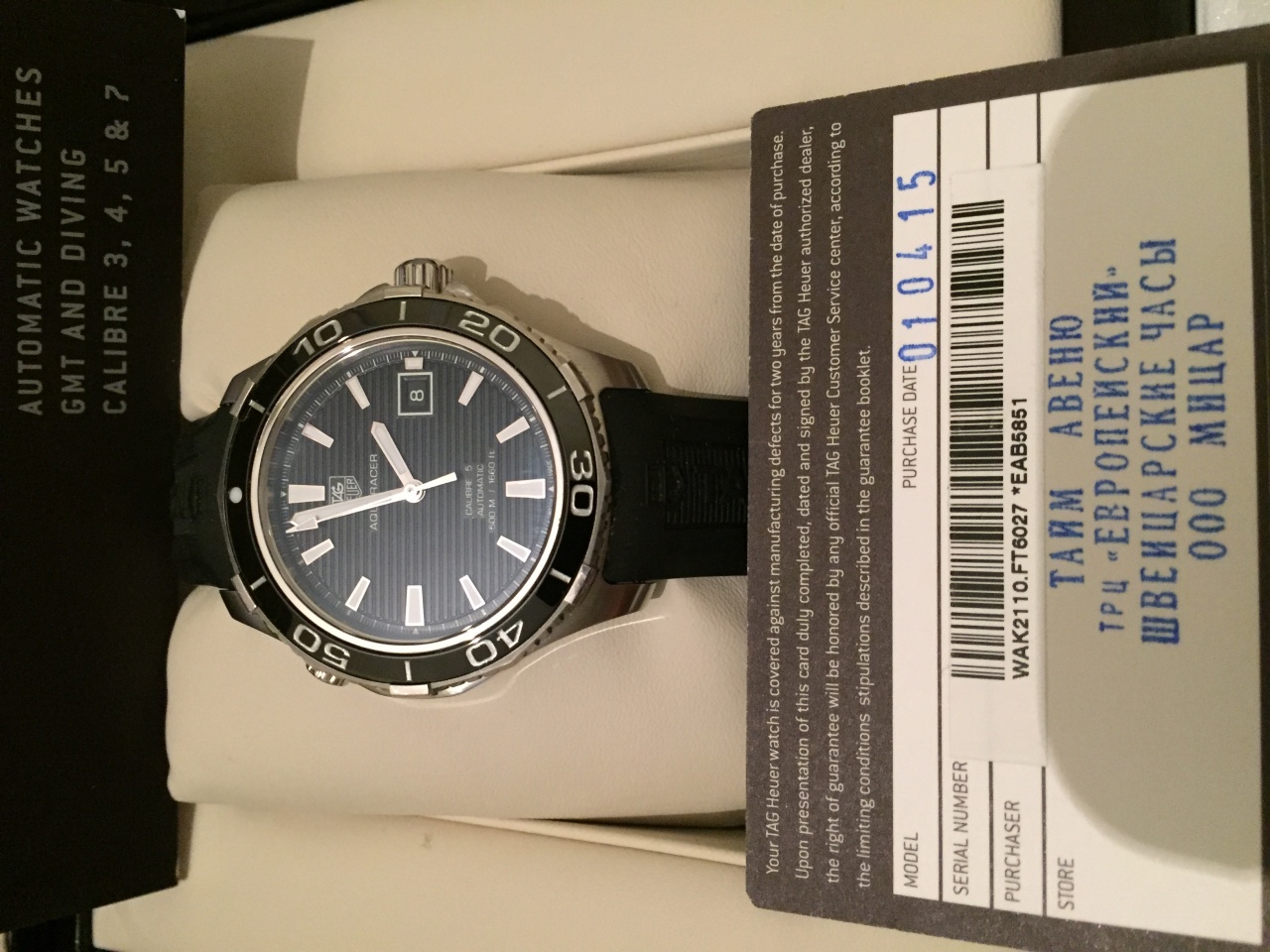 Пол: мужские Год покупки: 2015 БУ часы, состояние: AA (отличное) http://forum.watch.ru/images/market-question.png Полировка: нет Цена: 88 000 руб. (продажа) Коробка: есть Документы: есть В 1895 году Эдуард Хоэр получил патент на водонепроницаемый корпус, и вскоре часы марки TAG Heuer получили признание как самые надёжные и прочные часы для водных видов спорта. С момента запуска серии Aquaracer конструкторы TAG Heuer постоянно совершенствовали её модели. Сегодня эти часы считаются стандартом в плане водонепроницаемости и представляют собой идеальный вариант для любителей водных видов спорта благодаря 6 ключевым особенностям: водонепроницаемость от 300 до 500 метров, вращающийся в одну сторону безель, завинчивающаяся заводная головка, стрелки и часовые метки с люминесцентными вставками, сапфировое стекло стойкое к появлению царапин. Коллекция: Aquaracer Пол: Мужские Материал: Нержавеющая сталь Механизм: Калибр Tag Heuer Calibre 5, механический с системой автоматического подзавода, 28800 полуколебаний в час, 26 камней, запас хода 38 часов Стекло: Cапфировое Крепление: каучук с клипсой Водозащита: 50 атм Размеры: 41 мм Tag Heuer Aquaracer 500M Мужская механическая модель, окошко даты в положении 3 часа, автоматический гелиевый клапан в положении 10 часов, вращающийся в одном направлении керамический безель Часы в идеальном состоянии, одевались несколько раз, на официальной гарантии. Вложение 1253924Вложение 1253925Вложение 1253926 Вложение 1253927Вложение 1253928Вложение 1253929 Вложение 1253930Вложение 1253931Вложение 1253932 Вложение 1253933Вложение 1253934Вложение 1253935 |