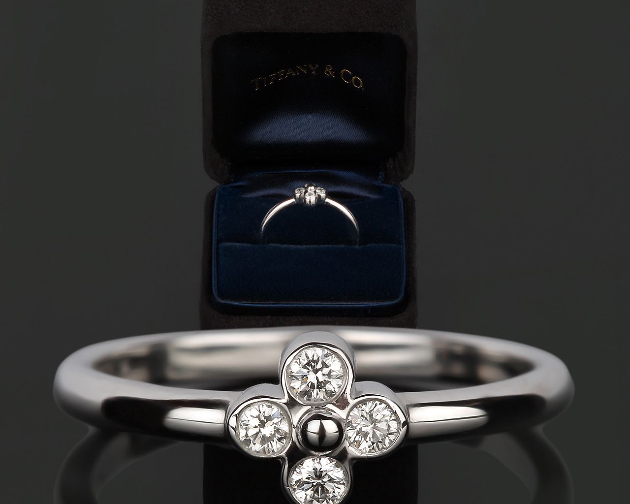 Изящное кольцо из платины 950 пробы украшенное природными Бриллиантами от Tiffany & Co !