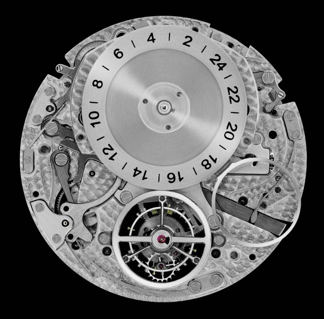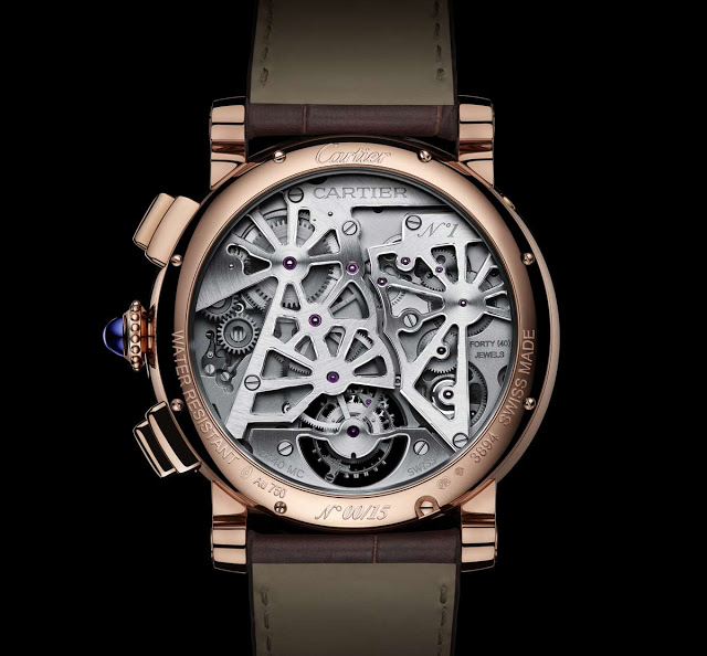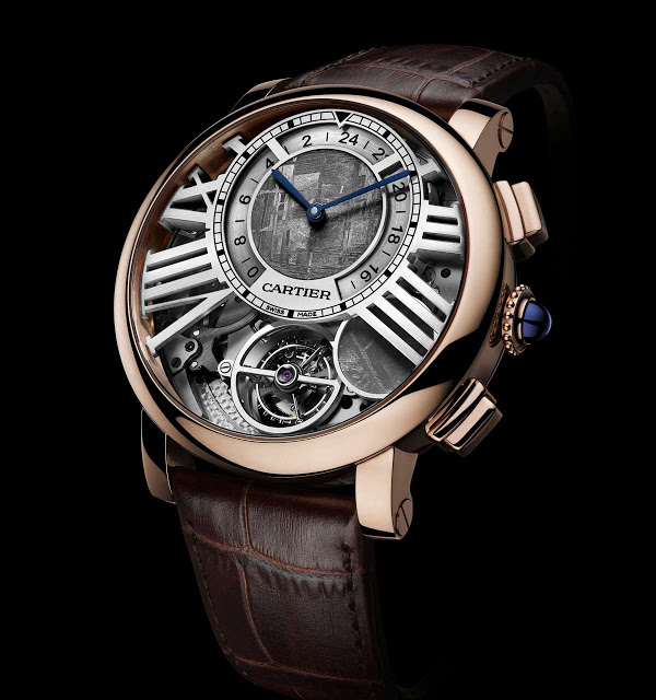 Новинка имеет круглый полированный корпус, изготовленный из 18-каратного розового золота, диаметром 47,00 мм, толщиной 16,65 мм. В торце заводной головки, расположенной на 3 часах, инкрустирован синий сапфировый кобошон. Сапфировое стекло установлено на передней стороне корпуса и на его завинчивающейся задней крышке. Циферблат сложный многоуровневый, с крупными объемными римскими цифрами, децентрализованным малым циферблатом и с воронеными стрелками мечевидной формы. Модель оснащена мануфактурным швейцарским механизмом с ручным заводом 9440 MC, разработанным Cartier R&D совместно с Renaud & Papi, состоящим из 362 деталей, с балансовой частотой 21600 полуколебаний в час (3 гц), трехдневным запасом хода, функциями индикации часов, минут (посредством соответствующих центральных стрелок на децентрализованном циферблате, смещенном на 12 часах), времени второго часового пояса (посредством соответствующего цифрового указателя в виде вращающегося диска с 24-часовой разметкой, устанавливаемого с помощью пушера, расположенного на корпусе на 4 часах) и фаз Луны (посредством соответствующего указателя в виде подвижного диска из полированного метеоритного камня, прикрывающего круглую апертуру с кареткой турбийона, размещенного на 6 часах, устанавливаемого с помощью пушера, расположенного на корпусе на 2 часах). Калибр отлично отделан и декорирован. Поставляется на коричневом ремешке из кожи аллигатора с застежкой из 18-каратного розового золота. Лимитированный выпуск 15 пронумерованных экземпляров. Цена модели составляет $ 235000. Вложение 1256378 Вложение 1256379 Вложение 1256380 Вложение 1256382 Вложение 1256381 Источник: http://www.timeandwatches.com/2016/0...otonde-de.html |