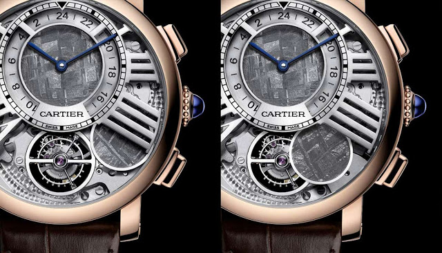 Швейцарская часовая компания Cartier проанонсировала свою новую лимитированную модель Rotonde de Cartier Earth and Moon in Pink Gold, которая будет официально представлена на международной часовой выставке SIHH-2016 (SALON INTERNATIONAL DE LA HAUTE HORLOGERIE, состоится в период с 18 по 22 января 2016 года в Женеве). Название модели происходит от двух полированных дисков, вырезанных из метеоритного камня, представляющих собой Землю и Луну (Earth and Moon) на малом боковом циферблате, расположенном на 12 часах и на указателе фаз Луны в нижней части циферблата.