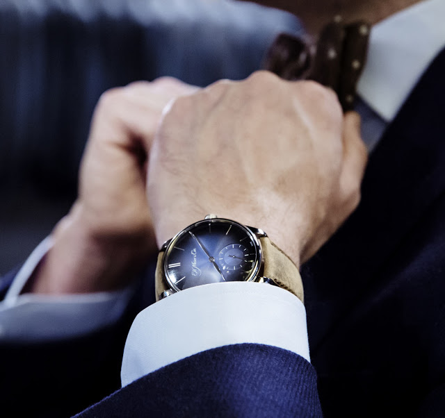 Швейцарская часовая компания H. Moser & Cie. проанонсировала свою новую модель Venturer Small Seconds XL Funky Blue (Ref. 2327-0203), которая будет официально представлена на международной часовой выставке SIHH-2016 (SALON INTERNATIONAL DE LA HAUTE HORLOGERIE, состоится в период с 18 по 22 января 2016 года в Женеве). Дизайн модели выполнен в лаконичном элегантном стиле understatement.