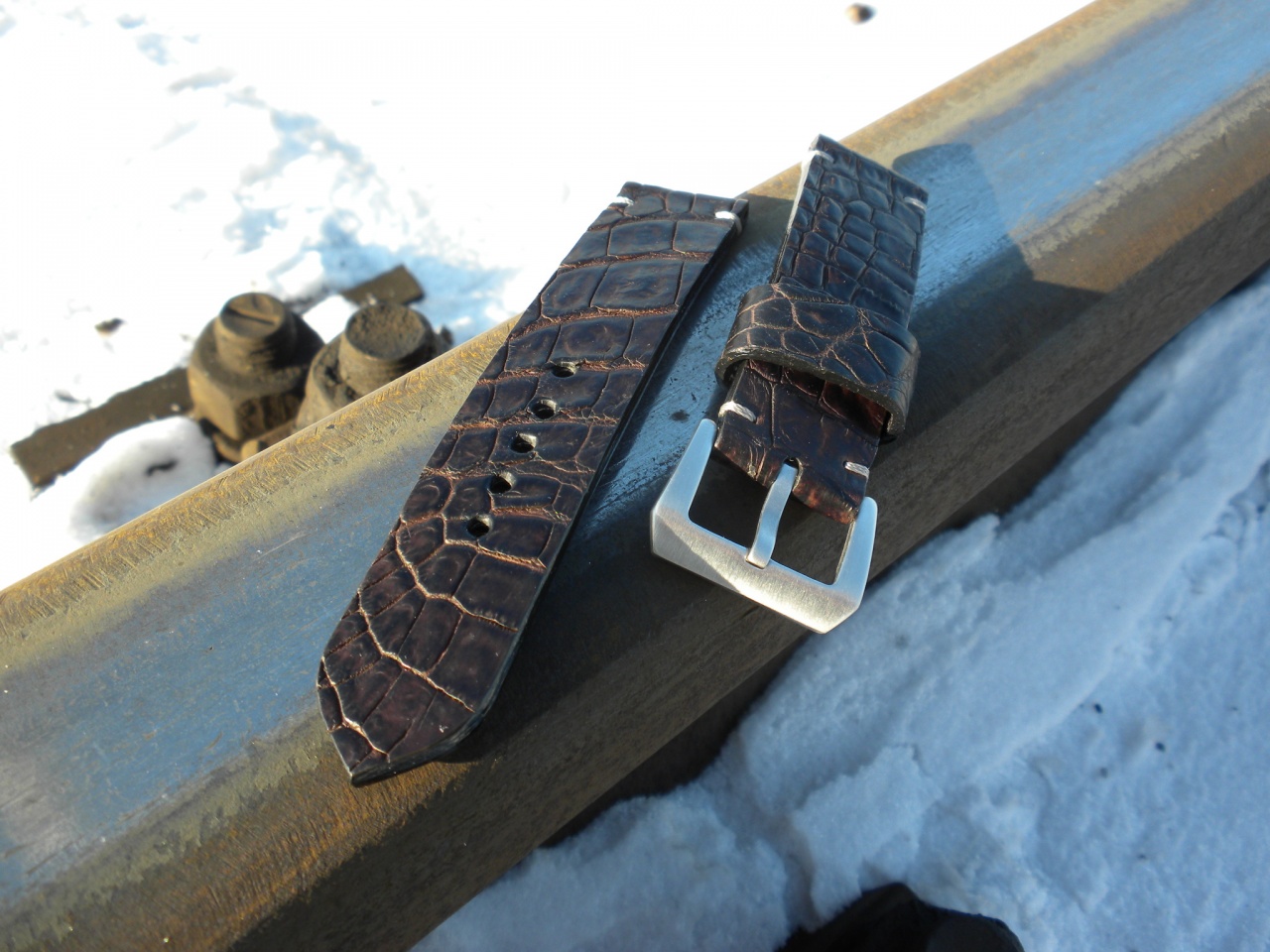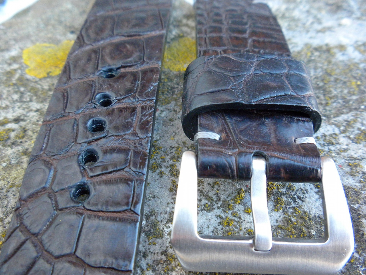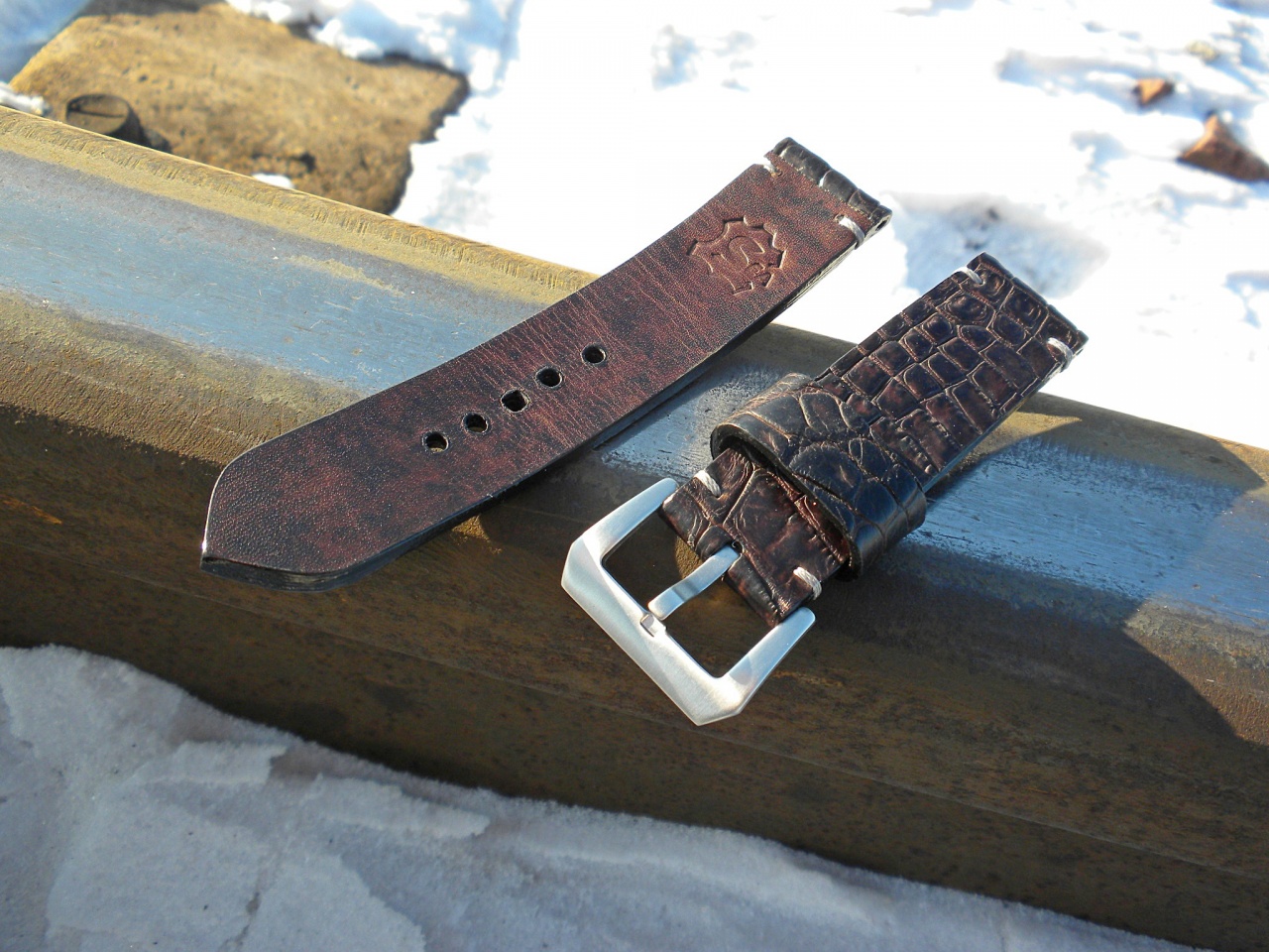 Ремешки 24/24, крокодил и винтажный винного цвета с латунной баклей.100% ручная работа от Sealeather