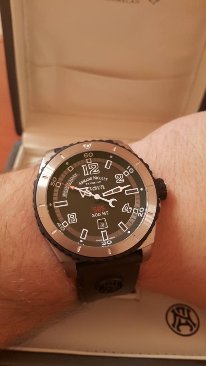 Пол: мужские Год покупки: 2016 Новые часы, состояние: N (новые в пленках) http://forum.watch.ru/images/market-question.png Цена: 85 000 руб. (продажа) Коробка: есть Документы: есть http://www.europastarwatch.ru/IMG/ar...jpg?1302038717 В продаже Armand Nicolet S05 Day&Date https://lh3.googleusercontent.com/-2...2/P1970066.JPG Технические характеристики Водозащита 300м. Стекло: сапфировое с антибликовым покрытием. Материал часов: Титановый сплав Тип механизма: механический с автоподзаводом ETA 2834-2 Размер часов: диаметр 44 мм. Ритейл часов 4400$ Замечательный спортивный дайвер на каждый день! Часы очень легкие за счет того что корпус выполнен из титанового сплава. Циферблат цвета «мокрый асфальт» защищен сапфировым стеклом с антибликовым покрытием. Безель, заводная головка и кнопки декорированы каучуковыми вставками. Классический силиконовый ремень с титановой пряжкой Индикация числа и дня недели. Заднюю крышку украшает искусная гравировка с изображением рыбки. Часы очень хорошо смотрятся на запястье от 18 до 20 см! На фото часы на руке 18.5 см. Полный комплект! 3 коробки! Руководство по эксплуатации на русском языке! Часы находятся в Санкт-Петербурге! Отправка по РФ курьерской службой КСЕ до двери за мой счет! Отзывы обо мне можно почитать в соответствующей теме: Отзывы покупателей - Отзывы о часовых магазинах Вложение 1313760Вложение 1313761 Вложение 1313762Вложение 1313763 Больше такой модели в продаже не ожидается, не упустите свой шанс! |