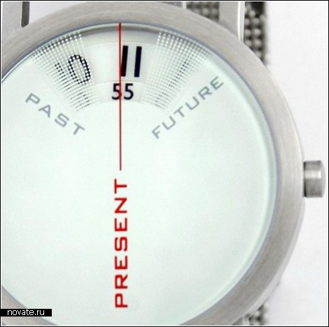 Обычные механические часы обычно имеют циферблат, на котором изображены все двенадцать часов и шестьдесят секунд. Но, спрашивается, зачем человеку все это видеть? Ведь он смотрит на часы, чтобы определить текущее время, а не полюбоваться временем будущим и прошлым. И потому дизайнер Дэриел Вилл-Харрис (Daniel Will-Harris) разработал часы Past-Present-Future Watch для тех, кто живет настоящим.