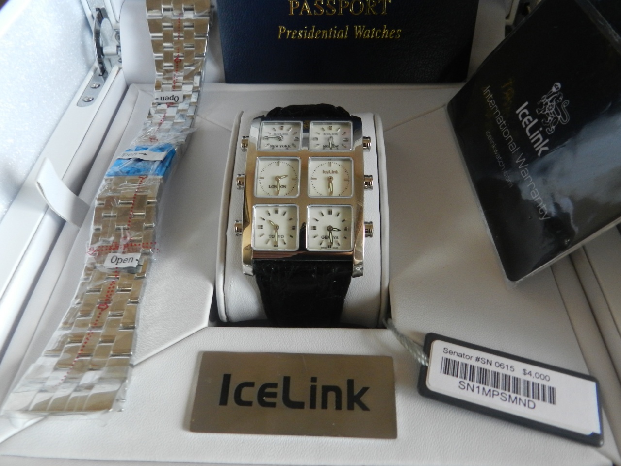 Пол: унисекс Год покупки: не указано Новые часы, состояние: N- (новые) http://forum.watch.ru/images/market-question.png Цена: 75 000 руб. (продажа) Коробка: есть Документы: есть Продаются новые оригинальные часы IceLink 6 TimeZone Senator Steel. Швейцарский часовой механизм Ronda 1042. Размеры корпуса: длина 45 мм, ширина 33 мм. Нержавеющая сталь, сапфировое стекло. Водонепроницаемость 3 atm. Часы на черном ремешке из кожи аллигатора (стальной браслет на фото - не для продажи). В комплекте паспорт часов, оригинальный ценник, упаковочная коробка. Фирменный кейс (на фото) не сохранился, был подарен. 6 циферблатов: NY, Moscow, London, Tokyo, Geneva + произвольный IceLink. Часы станут хорошим приобретением для тех, кто любит путешествовать или ведет бизнес по всему миру. Вложение 1322964 Вложение 1322965 Вложение 1322966 Вложение 1322967 |