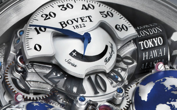 Индикация мирового времени у Bovet Récital 18 Shooting Star представлена при помощи полусферы. Такой подход позволяет определять время для всех часовых поясов, причем делать это можно одновременно. Для установки мирового времени используется коронка. При ее отжатии указатель городов на специальном роллере приводится в движение, отображая выбранный город. В то же самое время стрелка полусферы перемещается, давая возможность узнать время в нужном регионе. Это усложнение контролируется колонным колесом, давая возможность результативно использовать пространство циферблата. Bovet Récital 18 Shooting Star также обладает индикатором фазы Луны, который гармонично расположен с левой части циферблата. Индикатор включает в себя данные для южного и северного полушарий. Для индикации используются кольца, закрепленные над поверхностью звездного неба. Регулировку точности отображения фазы Луны следует проводить один раз в 122 года. Люминесцентное покрытие поверхности индикатора дает невероятный визуальный эффект. Точно такое же покрытие имеют полусферы ворлдтаймера. В условиях недостаточного освещения есть возможность рассмотреть индикаторы благодаря люминесцентному покрытию. Время в часах Bovet Récital 18 Shooting Star отображается при помощи окошка прыгающего часа и ретроградной минутной шкалы на 12-ти часах. Между этими двумя индикаторами встроен индикатор запаса хода, который рассчитан на 5 дней. Еще одна полусфера на циферблате принадлежит турбйиону, который расположен на 6-ти часах. Турбийон работает с частотой 21600 пк/час, каретка и мост турбийона украшены гравировкой, выполненной вручную. Стоимость новинки Bovet Récital 18 Shooting Star составляет 295000 CHF. Технические характеристики Корпус: Dimier, диаметр 46,00 мм, толщина 18,15 мм, белое золото 18к, водонепроницаемость до 30 метров. Циферблат: белый лак, авантюрин. Механизм: с ручным заводом, калибр 17DM01-HU, запас хода 5 дней, балансовая частота 21 600 пк/ч. Функции: часы, минуты, турбийон, мировое время, указатель 24-х городов, фаза Луны. Часы комплектуются ремешком из кожи аллигатора с золотой застежкой. Серия: часы выпущены ограниченной серией 50 штук. Вложение 1324913 Вложение 1324916 Вложение 1324917 Вложение 1324918 Источник: http://luxwatch.ua/watch-news/view/3708 |