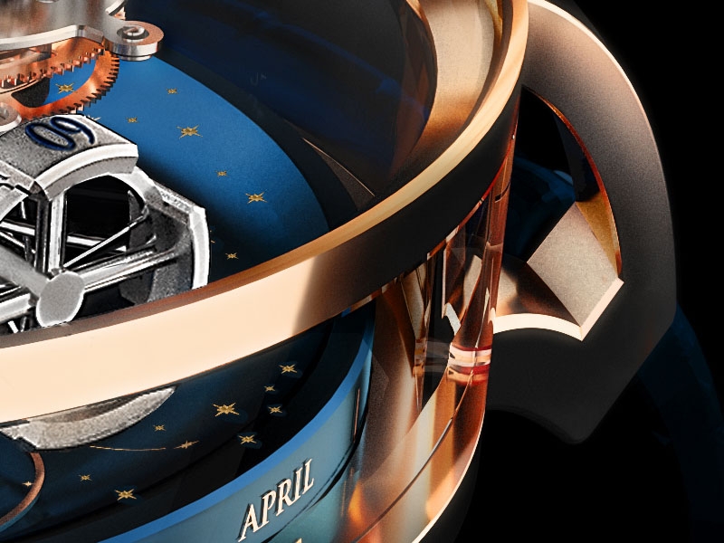 «Подобно моряку, который бороздит океанские просторы, глядя на небосвод, я нашел свою звезду, это Astronomia Sky», говорит Джейкоб Арабо, основатель компании Jacob & Co. В 2014 году марка уже представляла модель Astronomia Tourbillon, оснащенную трехосевым турбийоном [см. о ней на нашем форуме здесь. Ego]. В этом году в астрономический часовой ансамбль решено было добавить трехмерную индикацию звездного времени, с которой здесь соседствуют карта звездного неба и индикатор день/ночь. Выполненный в виде небосвода циферблат Astronomia Sky совершает полный оборот за промежуток, равный звездному году (Звездный год – время, за которое Земля совершает полный оборот вокруг Солнца относительно звезд). Собственно, само «небо» изготовлено из синего титана 5-го класса, а для полноты картины декорировано звездами из 18-каратного белого золота и выгравированными вручную знаками зодиака. Вложение 1330457 Непосредственно под циферблатом расположен индикатор, который представляет собой карту звездного неба Северного полушария. Этот субциферблат совершает полный оборот за временной промежуток, равный звездному дню (время, за которое Земля совершает 1 оборот вокруг собственной оси – примерно 23,560916 часов). Циферблат закрыт стеклянной полусферой, под которой во всех подробностях просматривается четырехосевая модульная конструкция. В центре конструкции установлен гравированный вручную земной шар из лакированного титана. Шар вращается вокруг собственной оси под защитой тонированного купола из сапфирового стекла, символизирующего смену дня и ночи. Скорость вращения шара – 1 полный оборот каждые 20 минут. С той же скоростью вращается и сама модульная конструкция, на одном из концов которой расположен трехосевой турбийон. Скорость вращения турбийона по разным осям следующая: 60 секунд вокруг первой оси, 5 минут – вокруг второй и 20 минут – вокруг третьей. Вложение 1330458 Верхнюю часть этой космической композиции занимает малый циферблат с индикацией часов и минут. Благодаря дифференциальной системе, часовые индексы всегда расположены вертикально, что позволяет безошибочно считывать часовые показания в привычном для пользователя направлении по ходу часовой стрелки. Вложение 1330459 Третьим «спутником» Земли в необычном часовом ансамбле стал орбитальный индикатор секунд – ажурное титановое колесо, совершающее полный оборот вокруг своей оси за 60 секунд. Четвертый спутник – оранжевый сапфир огранки «Jacob Cut», сверкающий 288 гранями, который также совершает полный оборот вокруг своей оси за 60 секунд, вокруг циферблата – за 20 минут соответственно. Вложение 1330460 Управляться с этим чудом микромеханики позволяют специальные кольца, установленные на обороте часов. Первое кольцо предназначено для настройки времени и индикатора день/ночь, второе – обслуживает работу механизма. Настроить звездное время и скорректировать вид карты звездного неба можно при помощи шестеренок, которые также расположены на обратной стороне модели. За слаженную работу всех функций в этих часах отвечает мануфактурный калибр JCAM11, оснащенный ручным подзаводом. Механизм диаметром 40 мм состоит из 395 титановых деталей, собран на 42 камнях и работает с балансовой частотой 21600 пк/час, располагая 60-часовым запасом хода. Вложение 1330461 Корпус Astronomia Sky выполнен из 18-каратного розового золота и насчитывает 47 мм в диаметр