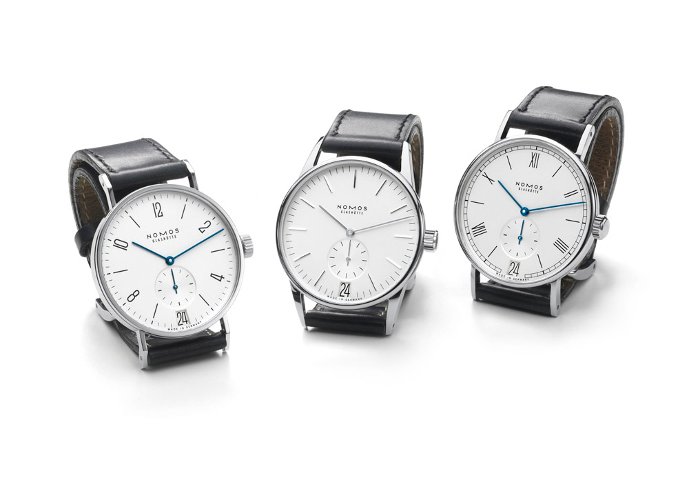 Мануфактурный механизм с ручным заводом и индикатором даты. Корпус диаметром 37,5 мм. Сапфировое стекло спереди и на задней крышке корпуса. Циферблат: гальванизированный, белый посеребренный. Стальные вороненные стрелки. Водостойкость до 3 атм. Ремешок кожаный. Цена: 1500 евро. ORION DATUM WEISS Мануфактурный механизм с ручным заводом и индикатором даты. Корпус диаметром 38 мм. Сапфировое стекло выпуклое спереди и на задней крышке корпуса. Циферблат: гальванизированный, белый посеребренный. Стальные родированные стрелки. Водостойкость до 3 атм. Ремешок кожаный. Цена: 1640 евро. LUDWIG DATUM Мануфактурный механизм с ручным заводом и индикатором даты. Корпус диаметром 37,5 мм. Сапфировое стекло спереди и на задней крышке корпуса. Циферблат: гальванизированный, белый посеребренный. Стальные вороненные стрелки. Водостойкость до 3 атм. Ремешок кожаный. Цена: 1460 евро. На картинке эти модели слева направо. Источник: http://watch-happening.blogspot.com/...010-nomos.html |