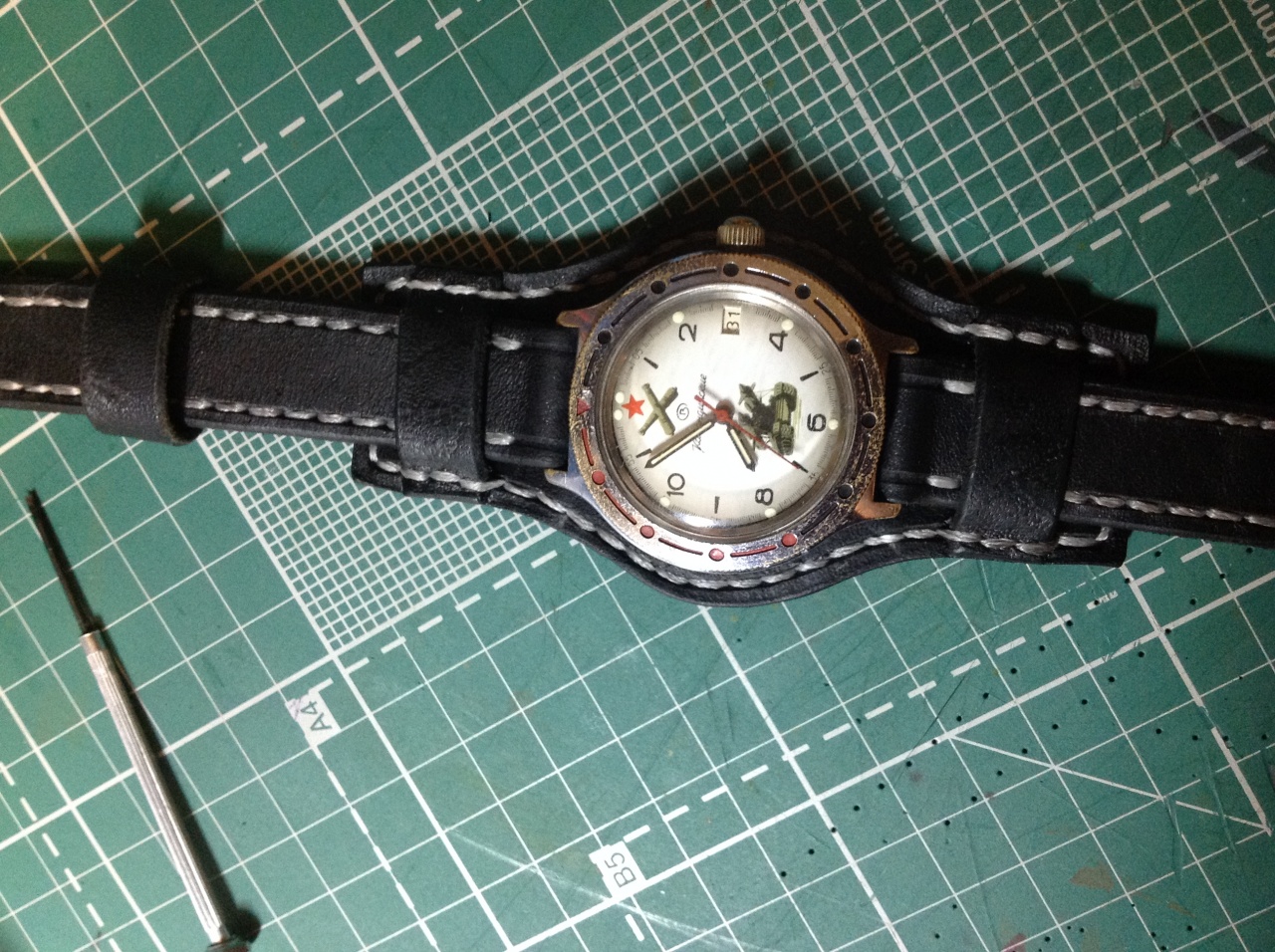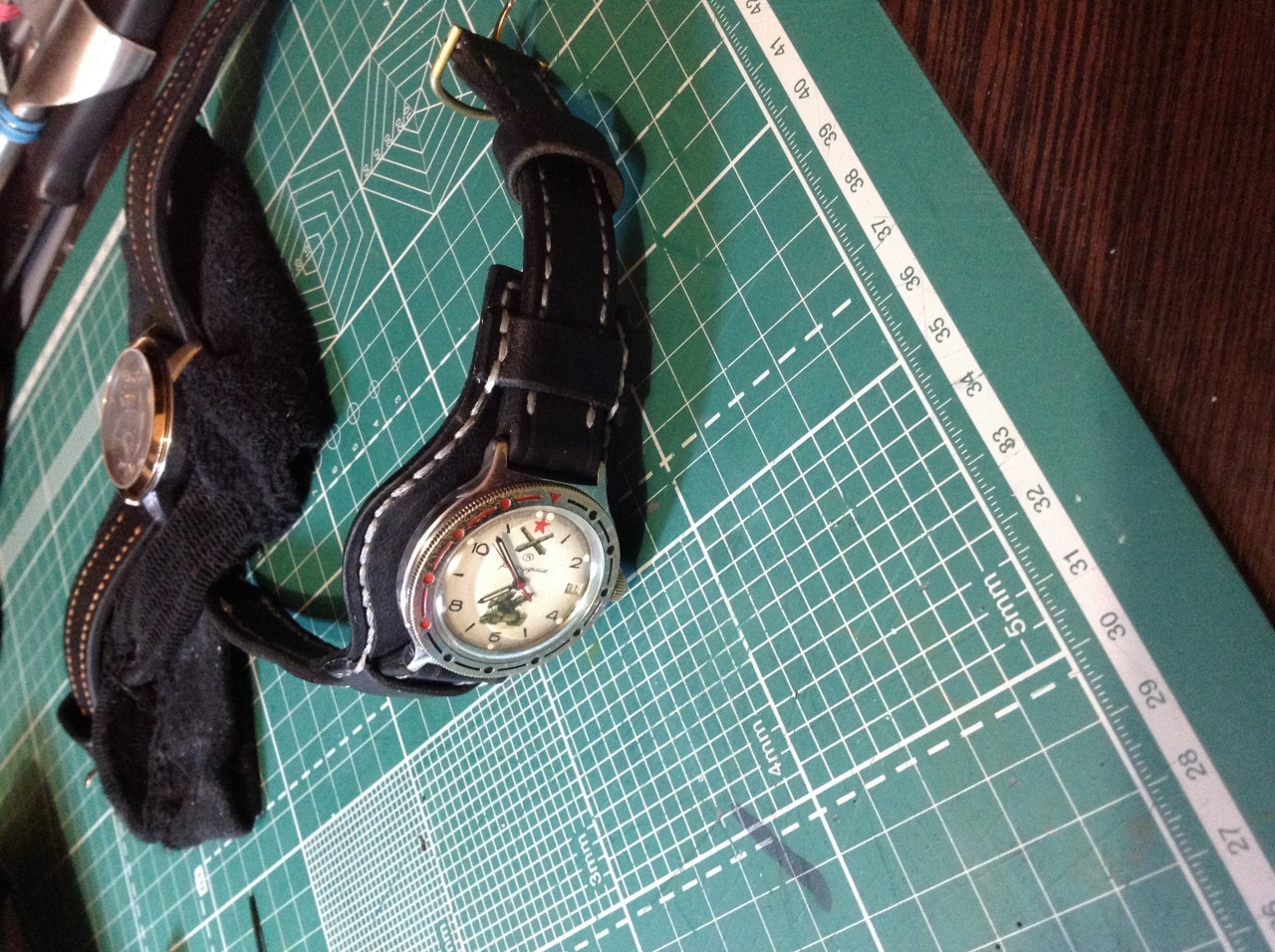 Совершенству нет предела. Нужно самому немного поносить ремешок с часами. Начало нормальное. Чтобы шлевка/кипер/тренчик, как угодно можно назвать, изнанкой обернуть на ремешок. Поставить метки по углам и их немного срезать. Тогда он примет правильную прямоугольную форму. Удачи и успехов! |