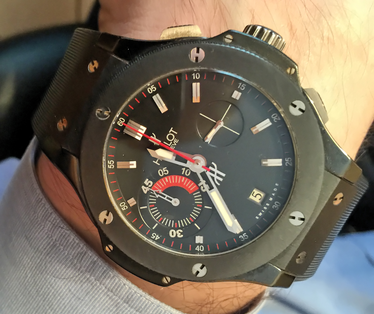 Доброго времени суток! Если знаете, подскажите похожи на настоящие? Нвого начальника отдела прислали и у него на руке такие часы. Но кмк, часы на настоящие не очень похожи, что скажете? |
