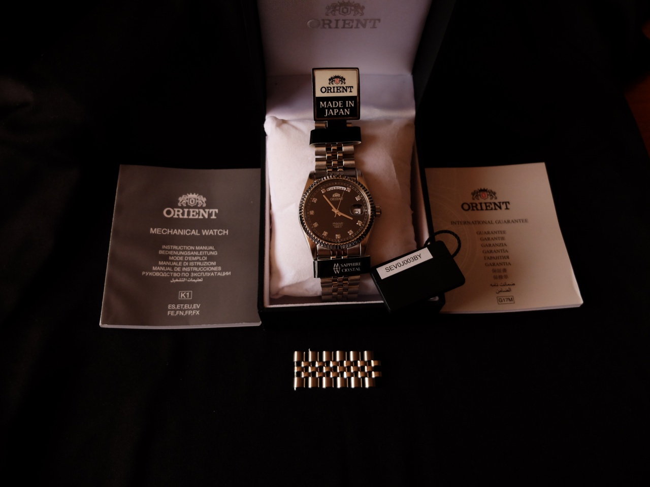 Редкие знаменитые Orient Oyster (Made In Japan) Вложений: 14 Orient - SEV0J003BY Пол: мужские Год покупки: 2015 БУ часы, состояние: AA (отличное) http://forum.watch.ru/images/market-question.png Полировка: нет Цена: 16 000 руб. (продажа) Коробка: есть Документы: есть В продаже редкие часы Orient Oyster Sapphire Japan day date SEV0J003BY Часы абсолютно новые, не носились ни разу, из-за того, что снято 6 звеньев (планировал носить) пришлось указать состояние АА. Т.е., часы только примерялись. Их состояние идеально! Сохранены все бирки, пленки, картонки. На задней крышке часов прозрачная пленка. Инструкция , гарантийный талон. Стальной корпус и браслет 40 мм с ЗГ (37.5 мм без ЗГ) 10 мм толщина 100 м водозащита, ЗГ и задняя крышка завинчивающиеся! Сапфировое стекло с циклопом 20 мм литой браслет (за исключением застежки и крайних звеньев) Механизм с автоподзаводом, датой и днем недели, ручной завод и хак - отсутствуют. Made In Japan. Вложение 1375837Вложение 1375838Вложение 1375839 Вложение 1375840Вложение 1375841Вложение 1375842 Вложение 1375843Вложение 1375844Вложение 1375845 Вложение 1375846Вложение 1375847Вложение 1375848 Вложение 1375849Вложение 1375850 |