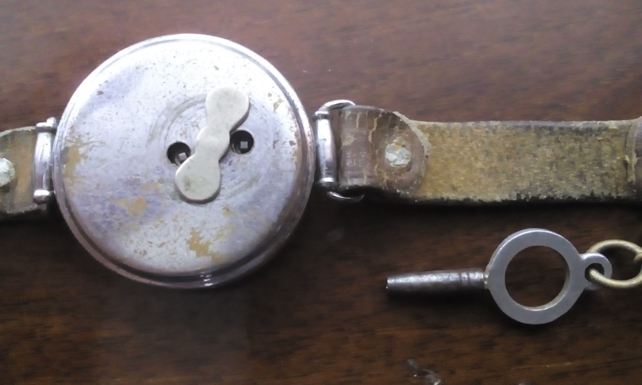 Часы ключевые. Были когда-то карманными, или, скорее всего дамскими, корсетными... Корпус для наручного ношения сделан позже. Этим баловались в первой половине 20 века - из-за неудовлетворенного спроса населения вообще какими бы то ни было часами. Даже, если посмотреть на сам механизм, на котором нет клейм, марку их, подозреваю, уже не определить. Ценность колекционную, думаю, не представляют. Хотя, всякое может быть...