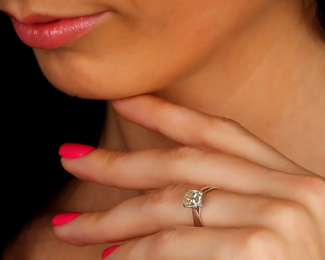 Представляем вашему вниманию золотое кольцо с крупным бриллиантом огранки кушон 1,51ct.