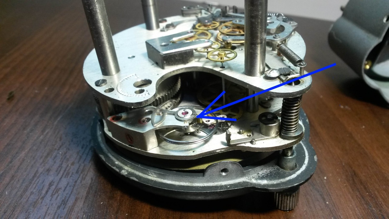 цапфа оси сломана, видите, нет противоударного устройства, это в таких часах самое распространенное явление..