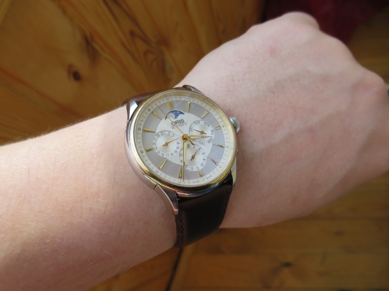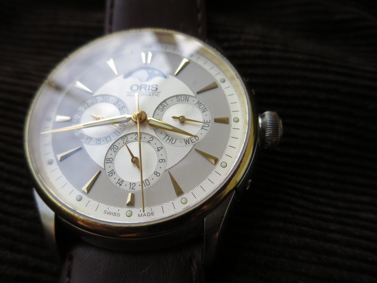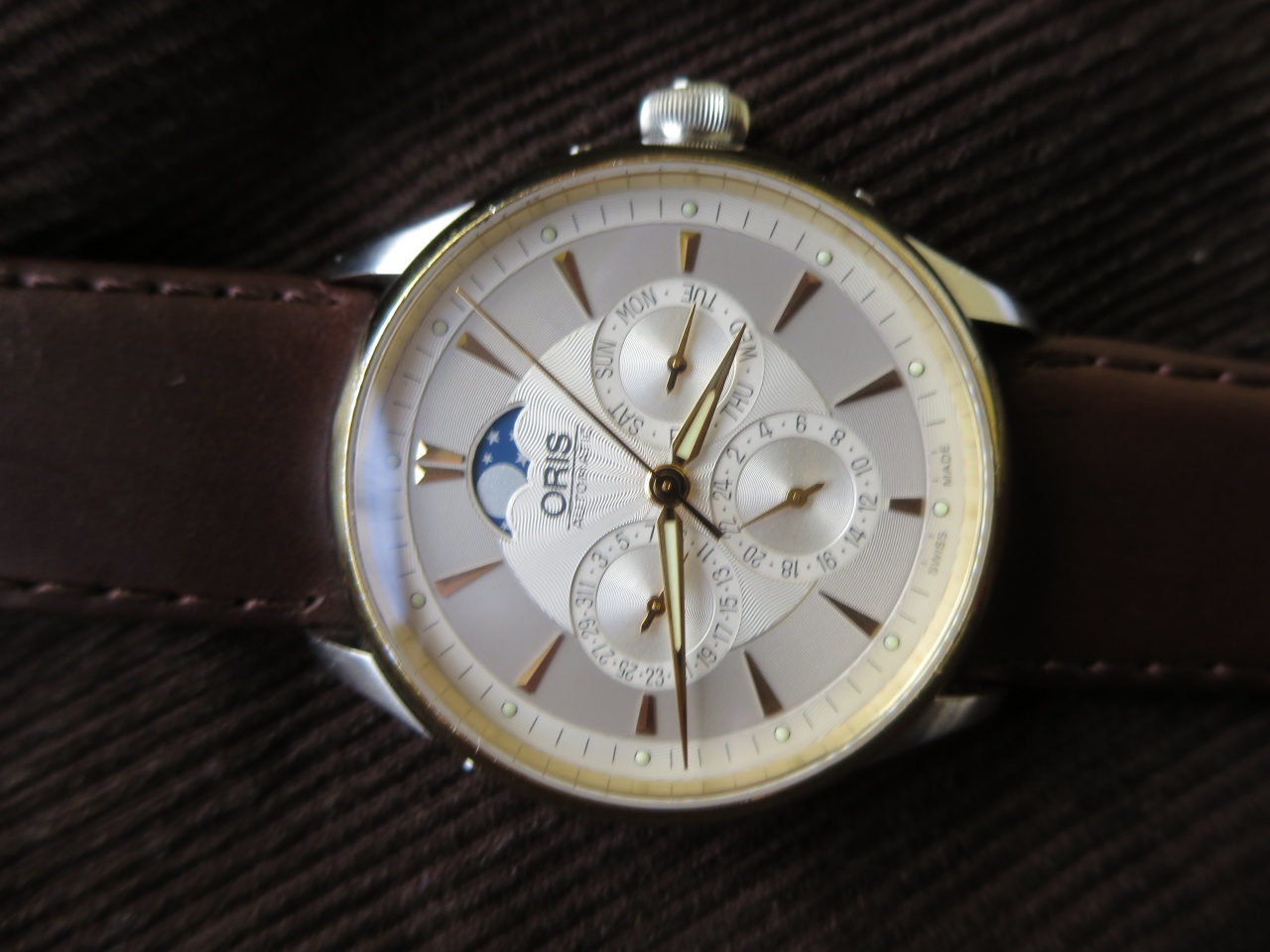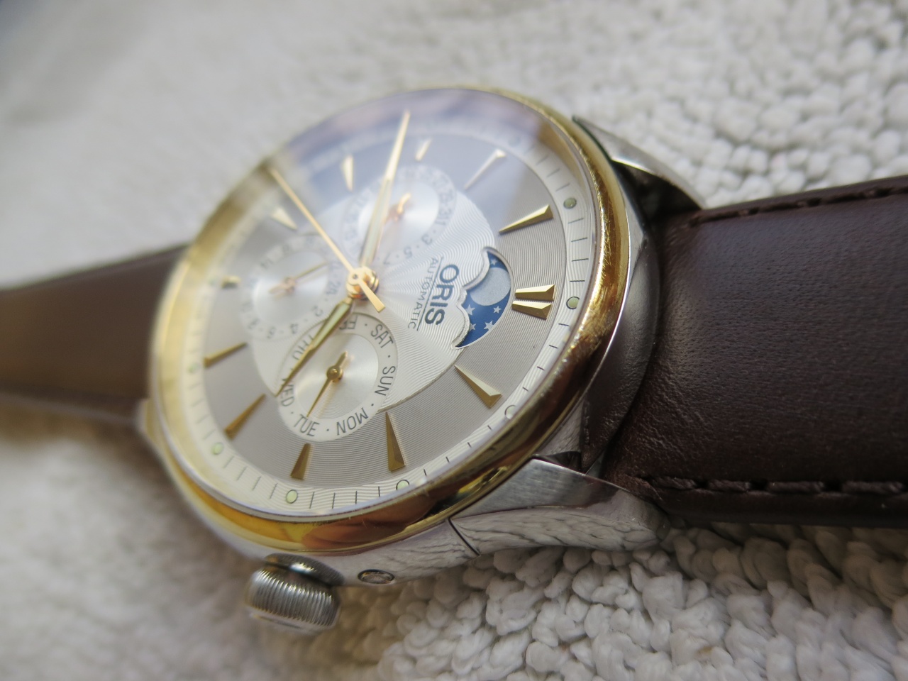 ТОПОВЫЙ и просто очень стильный ORIS ARTELIER Complication, дата, день, луна, гмт!!!! золото/сталь