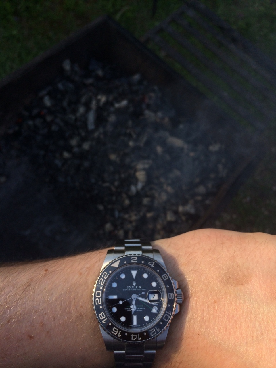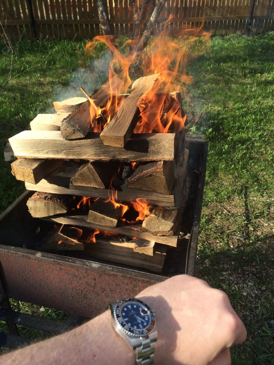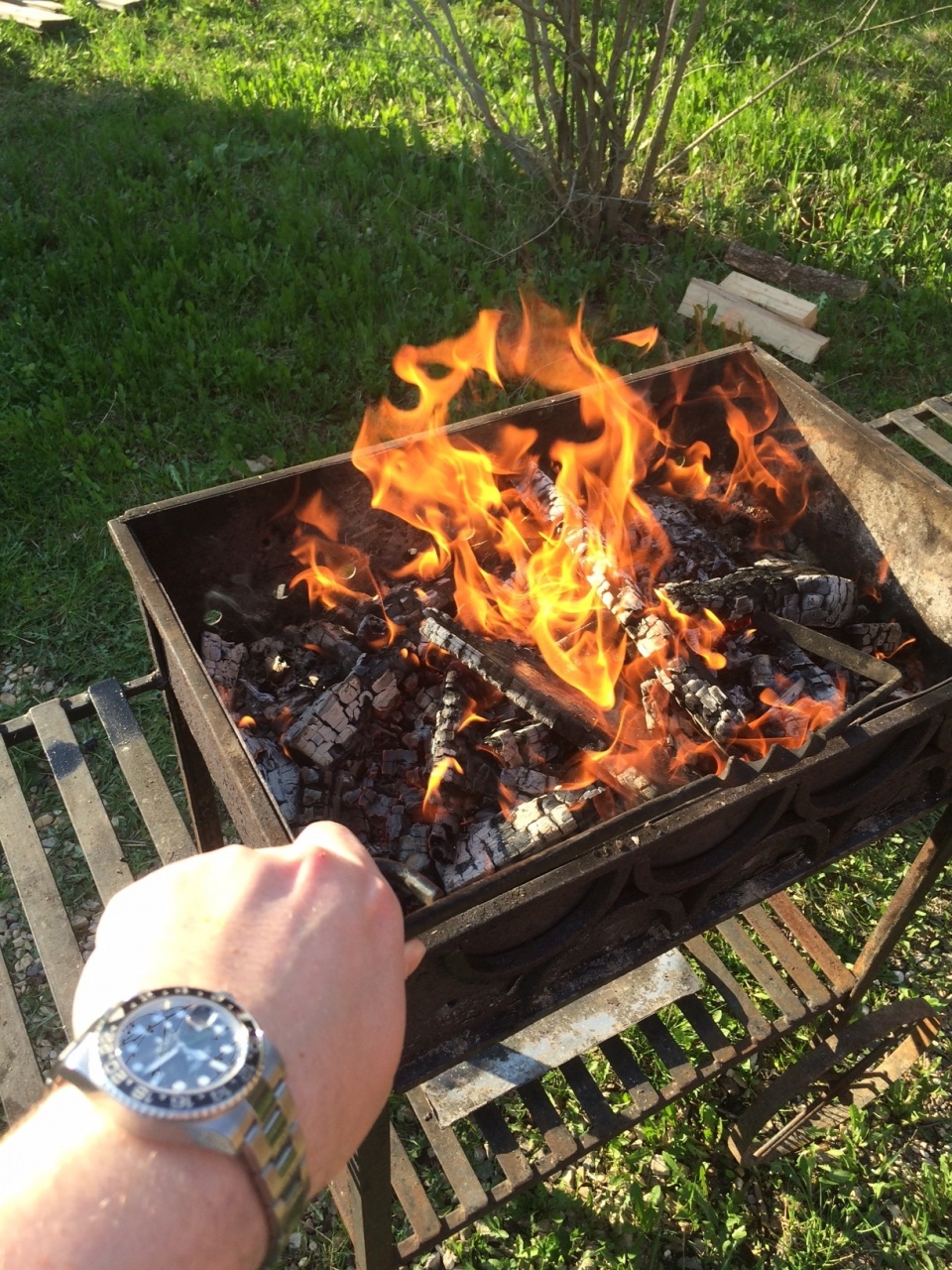 Решил вот вспомнить свою прошлогоднюю темку про выходные и шашлык на даче... http://forum.watch.ru/showthread.php?t=179875 Глядь, а она и не прошлогодняя вовсе, аж почти целых три года прошло! И ролику три года уже, для него не срок конечно, но все же..). Ну да ладно, праздники прошли, а воспоминания остались, спешу поделиться с товарищами, тем более, что выходные снова на носу и хочется немного поднять народу настроение и "разыграть" аппетит :D Итак, еще один фото отчет из "дачно-шашлычной" жизни моего ГМТ. Сначала нужно освежиться, жара же как-никак, так что по беленькому) Вложение 1396936 Снять часы перед рубкой дров обязательно! Вложение 1396942 Дрова готовы, складываем, как учили.... где-то, да никто не учил :D Вложение 1396943 Поджигаем! Вложение 1396944 Хорошо горит! Вложение 1396952 Так, пора приготовить инструмент. Вложение 1396953 Кастрюльку в кои-то веки заранее, а то вечно потом мясо горит, а снимать некуда:rolleyes: Вложение 1396954 Пчелы разлетались... Растут однако... Вложение 1396955 Всего полчаса и угли на подходе.. Вложение 1396956 Вперед! Жарим как всегда корейку, а что же еще... Вложение 1396957 Переворот! Вложение 1396958 Еще, по 5 минут с каждой стороны и готово! Вложение 1396959 Пора снимать, где все?! Вложение 1396960 Ух, снял. Вложение 1396961 Накроем, пока все собираются, только не крышкой, а то сварится :eek: Вложение 1396962 Вспомнить детство, запечь картошки, в фольге не люблю, прямо так в угли, чтобы потом руки и щеки детей были черными :D Вложение 1396963 Ура, пригодился вращающийся безель! Засекаем 35 минут! Вложение 1396964 Нехитрая закуска, без излишеств. Вложение 1396965 Винчик чуть похитрее.. Каюсь, грешен, что поделать, у всех свои слабости :D Уже года 3, как можно пить, а он все в шкафу пылится, будет уж ) Вложение 1396966 Мясо съели, теперь можно приниматься за картошку, раздельное питание:p Вложение 1396967 Вот как-то так прошел этот чудный майский день! Традиционно желаю всем побольше солнечных дней в кругу близких! Всех с прошедшими праздниками и наступающими выходными! |