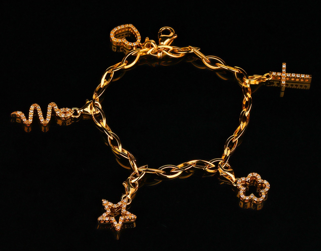 ЗОЛОТОЙ БРАСЛЕТ CARL BUCHERER С ШАРМАМИ.