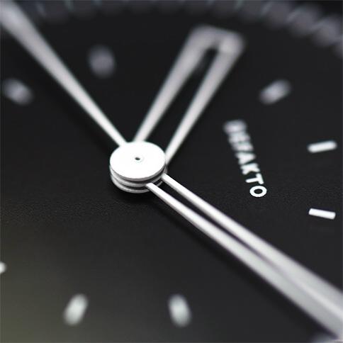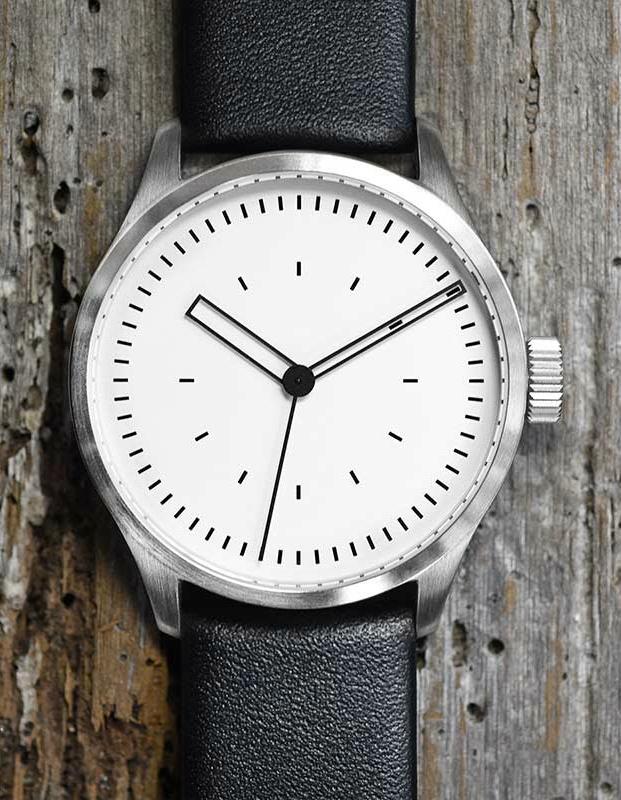 Круглый корпус новинки, изготовленный из нержавеющей стали или из нержавеющей стали с черным PVD-покрытием, диаметром 39,0 мм, толщиной 9,8 мм, с 20-миллиметровым расстоянием между ушками, водонепроницаемый до 50 метров. Крупная рифленая заводная головка расположена на 3 часах. Сапфировое стекло установлено на передней стороне часового корпуса и на его завинчивающейся задней крышке. Матово-черный или белый циферблат с напечатанными часовыми и минутными индексами, а также стрелками, выполненными в белом или в черном цвете. Часовая и минутная стрелки скелетонизированные. На циферблате отсутствует наименование или логотип бренда, а также другие надписи. Модель оснащена швейцарским автоматическим механизмом ETA 2824-2, на 25 камнях, с балансовой частотой 28800 полуколебаний в час (4 гц), 38-часовым запасом хода, функциями индикации часов, минут, секунд (посредством соответствующих центральных стрелок).