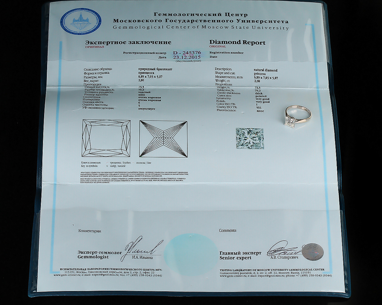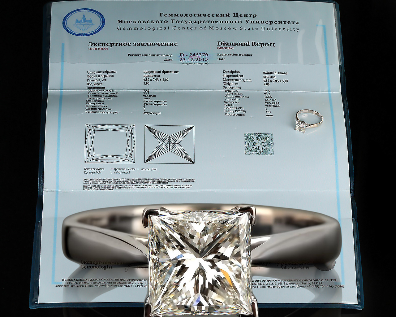 Артикул: 300316/20 Материал: Золото 750 проба. Вес: 3.03 грамма Вставки: 1 Бриллиант огранки "принцесса" 2.00ct.6/5 Размер: 17.25 Сертификат МГУ! Цена бриллианта по Рапапорт(Rapaport price): 1.095.600 рублей НАША ЦЕНА 790.000 руб Вложение 1409549Вложение 1409550Вложение 1409551Вложение 1409552 |