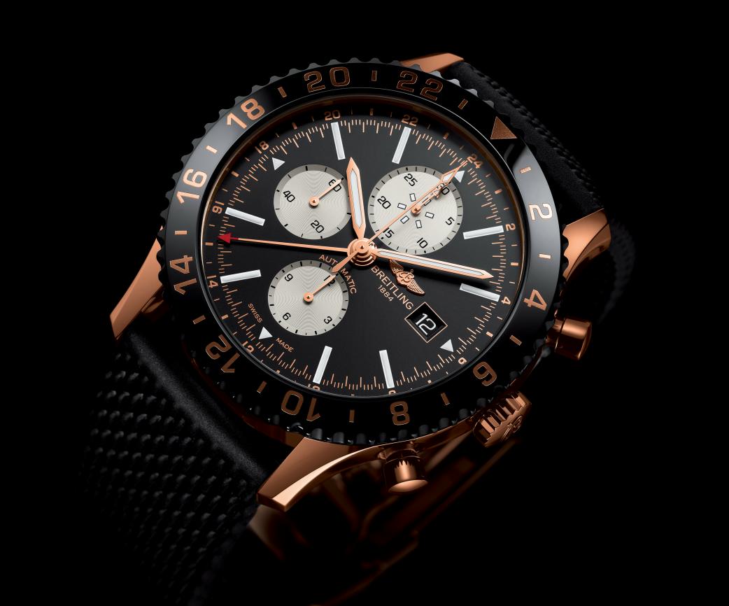 Новая лимитированная модель Chronoliner L.E. от швейцарской часовой компании Breitling имеет круглый полированный корпус, изготовленный из 18-каратного розового золота, диаметром 46,0 мм, водонепроницаемый до 100 метров. На торце завинчивающейся рифленой заводной головки, расположенной на 3 часах, выгравировано изображение логотипа бренда Breitling. Пушеры хронографа размещены на 2 и 4 часах. Вращающийся безель, выполненный из высокотехнологичной черной керамики, с 24-часовой разметкой, что позволяет его использовать для определения времени в другом часовом поясе. Задняя крышка часового корпуса глухая, гравированная. Сапфировое стекло с антибликовым покрытием защищает матово-черный циферблат с накладными индексами, часовой, минутной и центральной секундной стрелками, покрытыми люминесцентным составом белого цвета. Модель оснащена швейцарским автоматическим механизмом Breitling 24, на 25 камнях, с балансовой частотой 28800 полуколебаний в час (4 гц), запасом хода 46 часов, функциями индикации часов, минут (посредством соответствующих центральных стрелок), секунд (на соответствующем малом боковом циферблате, расположенном на 9 часах), даты (посредством соответствующего цифрового указателя в прямоугольной апертуре, расположенной на 3 часах), времени второго часового пояса (посредством соответствующей специальной центральной стрелки с красным наконечником, на 24-часовой шкале), а также с хронографом (центральная секундная стрелка, круглый аналоговый 30-минутный счетчик, расположенный на 12 часах, круглый аналоговый 12-часовый счетчик, расположенный на 6 часах). Калибр официально сертифицирован COSC (Contrôle Officiel Suisse des Chronomètres) в качестве хронометра.