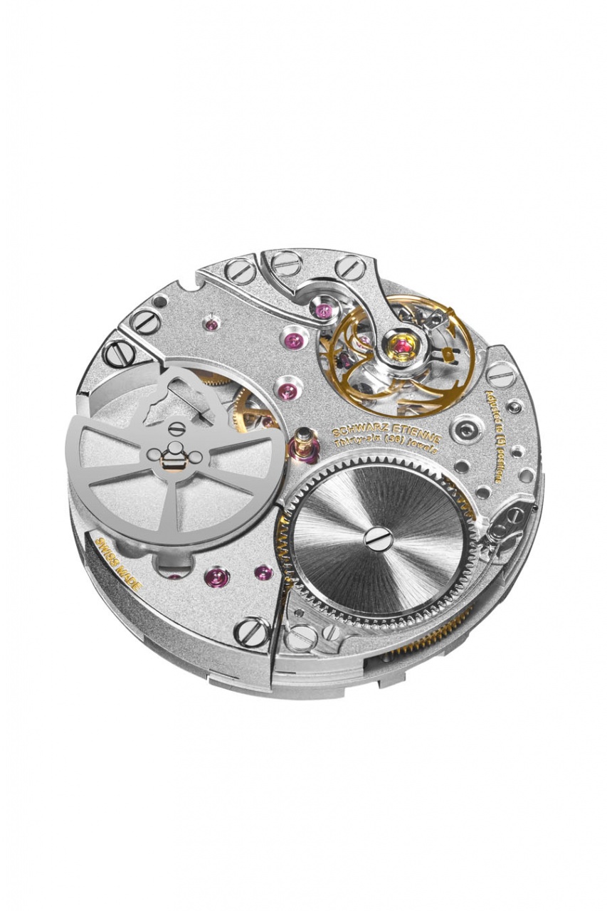 Новая лимитированная модель Roswell Voyage от швейцарской часовой компании Schwarz Etienne имеет круглый полированный корпус, изготовленный из нержавеющей стали, диаметром 45,0 мм, толщиной 11,3 мм, водонепроницаемый до 50 метров. На торце защищенной рифленой заводной головки, расположенной на 3 часах, выгравирован логотип бренда Schwarz Etienne. На завинчивающейся задней крышке имеется круглое окошко в которое вставлен каменный силуэт альпийской горы Маттерхорн. Сапфировое стекло защищает черный циферблат с лучистым гильошированием, с накладными родированными часовыми индексами и стрелками. На 9 часах размещена крупная круглая апертура, сквозь которую просматривается микро-ротор автоподзавода, а между 1 и 2 часами - круглая апертура, сквозь которую просматривается балансовое колесо. Модель оснащена мануфактурным швейцарским автоматическим механизмом Schwarz Etienne ISE 100.00 (Voyage 1), с децентрализованным микро-ротором, четырехдневным запасом хода, функциями индикации часов, минут (посредством соответствующих центральных стрелок) и секунд (на соответствующем малом боковом циферблате, расположенном на 11 часах).