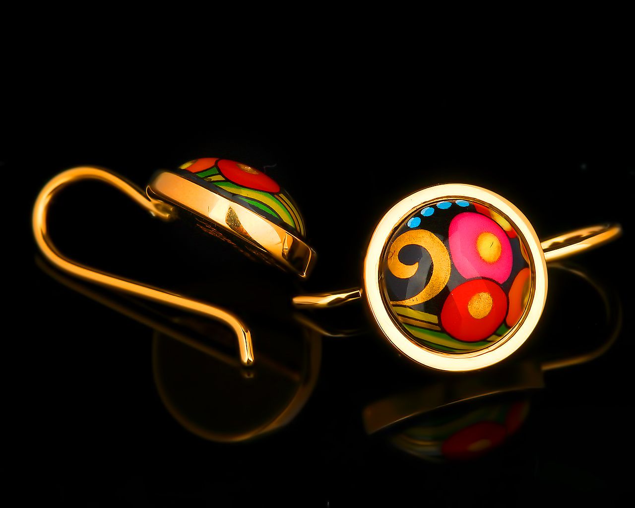 РАСПИСНЫЕ ЗОЛОТЫЕ СЕРЬГИ. FREY WILLE GOLDEN KALINKA