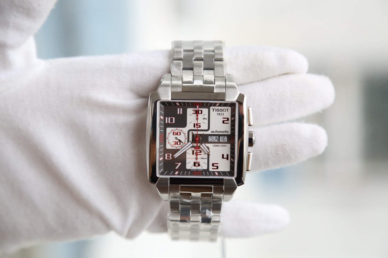 Посмотрите Tissot линейку quadrato, там есть и другие расцветки и кварцевые хронографы подешевле.
