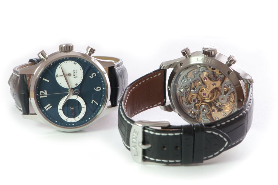 Круглый полированный корпус новинки, изготовленный из нержавеющей стали или 18-каратного розового золота, диаметром 40,0 мм, толщиной 14,1 мм, с 20-миллиметровым расстоянием между ушками. На торце рифленой заводной головки, расположенной на 3 часах, выгравирован логотип бренда Torsti Laine. Пушеры хронографа размещены на 2 и 4 часах. Сапфировое стекло установлено на передней стороне часового корпуса (с антибликовым покрытием) и на его завинчивающейся задней крышке. Циферблат объемный, толщиной 1,5 мм, доступен с двадцатью вариантами цветов. Арабские цифры белого цвета. Стрелки, за исключением секундной хронографической - с объемным изображением логотипа бренда Torsti Laine на ее противовесе), выполнены в листьевидной форме. Субциферблаты покрыты белым лаком. Модель оснащена NOS (New Old Stock) существенно модифицированным и переработанным механизмом Valjoux, с ручным заводом и с балансовой частотой 18000 полуколебаний в час (2,5 гц). О степени переработки свидетельствует, в частности то, что Torsti Laine 38 деталей изготовил в своем ателье (в том числе пять мостов, четыре пружины, новый узел муфты сцепления, новое балансовое колесо диаметром 12,5 мм из бериллиевой меди с четырьмя регуляторами). Все детали отполированы вручную, а все отверстия и головки винтов специально отделаны. Калибр доступен в темно-сером цвете, в розовом золоте, в желтом золоте и с родированными компонентами. Функции механизма: индикация часов, минут (посредством соответствующих центральных стрелок), секунд (на соответствующем малом боковом циферблате, расположенном на 9 часах), а также с хронографом (центральная секундная стрелка и круглый аналоговый 45-минутный счетчик, расположенный на 3 часах).