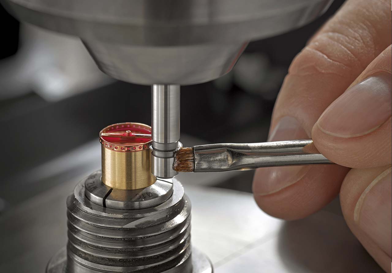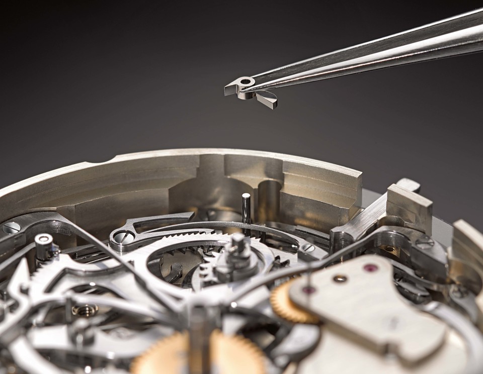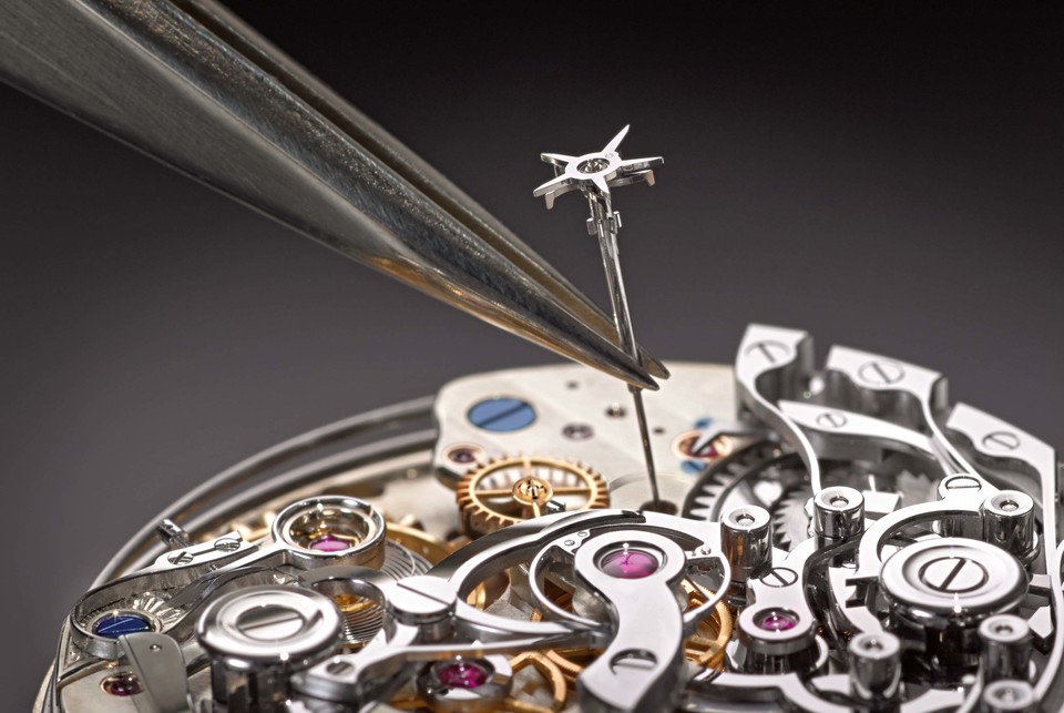 Grand Complication – дань уважения великим традициям прецизионного часового дела Саксонии. Эти часы воспринимаются как символ расцвета A. Lange & Söhne в новой эре истории мануфактуры. По мнению Энтони де Хааса, директора Lange по развитию коллекции, разработка этой модели и ее потрясающего устройства боя «предъявила созидательный потенциал наших инженеров и раскрыла интересные перспективы для новых разработок». В механизме часов Grand Complication реализованы функции большого и малого боя, минутного репетира, сплит-хронографа с минутным счетчиком и долевой секундной стрелкой, а также вечного календаря с индикацией фазы Луны. Только наиболее талантливые и опытные часовщики обладают квалификацией, достаточной для того, чтобы справится со всеми трудностями, возникающими при сборке и сложнейшей настройке механизма, состоящего из 876 деталей. Более того, даже лучшим мастерам нужен целый год, чтобы завершить эту работу, и без глубоких экспертных знаний, концентрации, сноровки и прежде всего терпения и настойчивости никак не обойтись. Все дело в том, что процесс сборки включает этапы исчерпывающего тестирования, в особенности это относится к настройке функционирования механизма боя. При проверке все звучание механизма в режиме автоматического боя записывается полными 24-часовыми циклами в течение нескольких недель. Для подтверждения того, что механизм правильно отбивает все четверти часа, производится последовательное прослушивание записей. Если бой осуществляется неверно, механизм полностью разбирают, заново настраивают, снова собирают и еще раз подвергают проверке. Трудность работы заложена в инструкции «свободный ход без люфта», которую любой здравомыслящий человек сочтет за физически невозможную для реализации, однако, она дается часовщику как описание идеального взаимодействия движущихся деталей механизма боя. Обработка гонгов Вложение 1462676 Качество обработки гонгов определяет, будет ли устройство боя звучным. Состав сплава, его твердость, форма гонгов, способ их крепления – инженерам и технологам следует найти оптимальное решение, приняв во внимание каждый фактор независимо от того, насколько несущественным он может представляться. На этой фотографии показано, как мастер при помощи алмазного надфиля формирует треугольный профиль основания гонга, что будет способствовать лучшей вибрации гонга при ударе молоточком. Установка рычагов с зубчатыми рейками Вложение 1462677 Ключевые детали устройства боя – три рычага с зубчатыми рейками. Они управляют процессом боя часов, четвертей и минут. Показанный здесь четвертной рычаг запускает от одного до трех двойных ударов для 15, 30 или 45 минут после начала часа. Рычаг изготовлен из закаленной стали, верхняя поверхность декорирована тонкой продольной шлифовкой. Сборка промежуточных коромысел Вложение 1462678 Промежуточное коромысло поворачивается под воздействием зубцов при движении рычага с зубчатой рейкой. Второе плечо коромысла передает движение молоточку, который ударяет о гонг, заставляя его звучать. Коромысла изготовлены из закаленной стали, при их установке требуется тщательная ручная доводка, чтобы обеспечить чистое звучание. Обточка анкера устройства боя Вложение 1462679 Устройство боя, снабженное собственной колесной передачей и анкерным регулятором равномерного темпа репетици