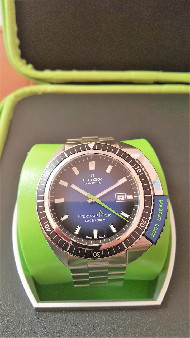 Пол: мужские Год покупки: 2016 Новые часы, состояние: N (новые в пленках) http://forum.watch.ru/images/market-question.png Цена: 80 000 руб. (продажа) Коробка: есть Документы: есть В продаже брутальный дайвер Edox Hydro-sub 50th Anniversary Limited Edition. http://www.ashford.com/images/catalo...BU-NBU_FLA.jpg Технические характеристики Водозащита: 500м. Стекло: сапфировое с антибликовым покрытием. Материал часов: сталь с частичным PVD покрытием Браслет: Стальной с двойной клипсой и системой удлинения браслета Цвет циферблата: Синий Тип механизма: Механический калибр Edox 80A на базе ETA 2824 Запас хода: 38 часов Размер часов: диаметр 46 мм. Стоимость часов в магазинах РФ: 142 650,00 р. Лимитированная серия - 515шт. Номер конкретно этих часов - 474/515 В механизме 25 камней, частота 28800 полуколебаний в час. Запас хода 38 часов. Противоударная система Incabloc. Безель вращается в одном направлении. Завинчивающаяся заводная головка с защитой и дополнительной блокировкой. Задняя крышка украшена изображением карты северного полушария. http://cdn.fratellowatches.netdna-cd...iversary-7.jpg В комплекте дополнительный каучуковый ремешок с застежкой клипсой дополнительный набор шпилек и инструмент для замены ремня. http://www.ashford.com/images/catalo...BU-NBU_WXA.jpg Часы поставляются в специальной подарочной коробке. http://www.ashford.com/images/catalo...BU-NBU_WXA.jpg Полный комплект! 2 коробки! Руководство по эксплуатации на русском языке! Часы находятся в Санкт-Петербурге! Отправка по РФ курьерской службой КСЕ до двери за мой счет! Отзывы обо мне можно почитать в соответствующей теме: Отзывы покупателей - Отзывы о часовых магазинах Фото сделаны на руке 18.5 см Несмотря на свои большие размеры копуса часы хорошо садятся на руку от 18 см. Вложение 1476317Вложение 1476318Вложение 1476319Вложение 1476320Вложение 1476321Вложение 1476322Вложение 1476323Вложение 1476324Вложение 1476325Вложение 1476326Вложение 1476327Вложение 1476328 |
