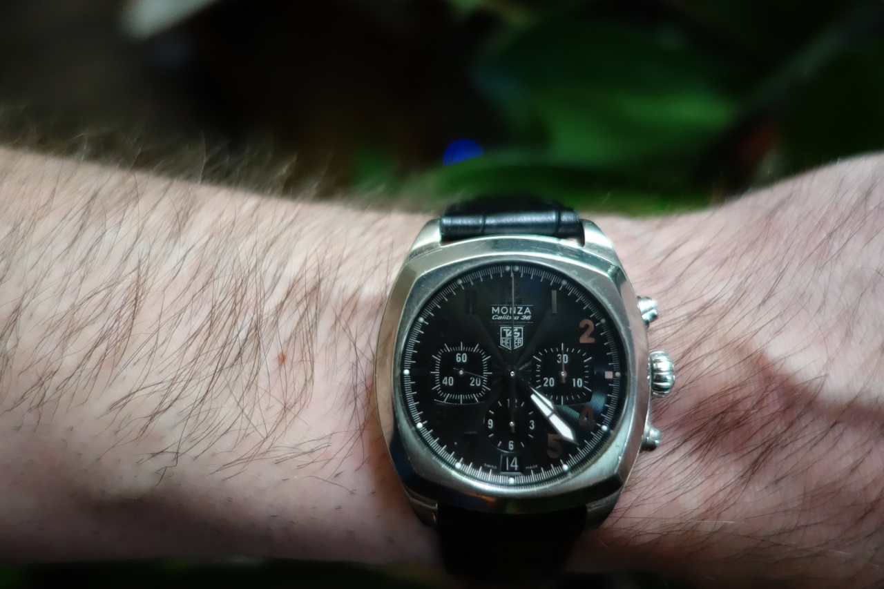 Рассказ был принят благосклонно, поэтому подумал и решил рискнуть повторить - уже с историей о не менее характерных часах, значимых для фирмы-производителя и поклонников марки Tag Heuer. Возможно, кому-то это окажется интересным. Каждый из владельцев часов марки Tag Heuer (или просто интересующихся этой маркой) знает, что история марки тесно связана с автогонками. Собственно, часы до сих пор так и позиционируются - отсюда именитая серия Carrera и Monaco. Но есть еще одна модель, которая, пожалуй, не менее знакова, чем названные выше. Это Tag Heuer Monza. К 70м годам компания Heuer подошла не в лучшей форме. В принципе, вся мировая экономика в целом была не в лучшей форме. Кварцевый кризис еще не наступил, хотя кварцевые механизмы уже были изобретены, от них уже отказалась швейцарская индустрия и их уже принимают за основу японцы с американцами. Но в 1971 году можно разве что разглядеть предвестники кризиса. Конкуренция за потребителя усиливается, за сохраняющийся платежеспособный спрос со стороны целевой аудитории (молодые спортивные мужчины 25-40 лет) возрастает в разы. И Heuer заключает спонсорский контракт с Ferrari в рамках выступлений в Формуле - 1. У Феррари все плохо. С 1964 года, со времен Сертиса, нет побед в чемпионатах, это же - последний год, когда удалось выиграть кубок конструкторов. Попытки реформ разбиваются о железобетонную уверенность в своей правоте Энзо Феррари. Как результат для спонсоров - траты уходят в пустоту. в 1972 году подиумов шесть. Но уже в 1973 - их нуль. У того же МкЛарена в том же году их восемь. А там спонсором, кстати - небезызвестная фирма Tag... И вот, наконец, в 1974 году напарником Регаццони становится некий Ники Лауда. Вложение 1492833 Вложение 1492834 С первых же дней он предпринимает доработки болида. Не все получается, но получается многое. Поддержку обеспечивает ди Монтеземоло, который умеет находить общий язык с Феррари и понимает, какой гений оказался в его распоряжении. И вот, наконец. 1974 год - Феррари занимает второе место в кубке конструкторов. Регаццони - вице-чемпион. Лауда продолжает работу. и в 1975 году, наконец, в предпоследнем гран-при (домашнем для команды Феррари, так как проходила гонка в Монце), команда досрочно завоевывает Кубок Конструкторов. Ну а Ники Лауда, соответственно - становится чемпионом. Вложение 1492835 Как может отметить это событие один из основных спонсоров команды? Ну, разумеется, в честь события выпускаются ЧАСЫ. В 1975 году выпускаются Heuer Monza. Вложение 1492832 Вложение 1492790 за основу берется хронограф-монопушер из 30-х. Вроде бы он тоже назывался Monza Вложение 1492845 Вложение 1492856 Особенностью является черное pvd покрытие. В остальном он полностью переработан, хотя корпус - все еще подушка. У Хойера уже есть опыт (не вполне удачный) выпуска Монако в 1969 году, есть опыт выпуска Silverstone в начале 70-х. Оба продукта - скорее нишевые. Но Carrera (выпущенная в далеком 1964 году в честь гонки "Carrera Panamericana Mexicana") - еще успешна, несмотря на подбирающийся все ближе и ближе кварцевый кризис. Монца оказывается успешной тоже. Но не настолько, чтобы удержать компанию на плаву. Вовсю бушует кварцевый кризис. Хойер в 1975 году выпускает в ответ кварцевый хронограф Heuer Chrono Split - первый наручный кварцевый хронограф. Не помогает. Подготавливает первый кварцевый хронограф с аналоговыми показаниями (он будет выведен на рынок в 1983 году и не поможет тоже) И в 1982 году происходит перв