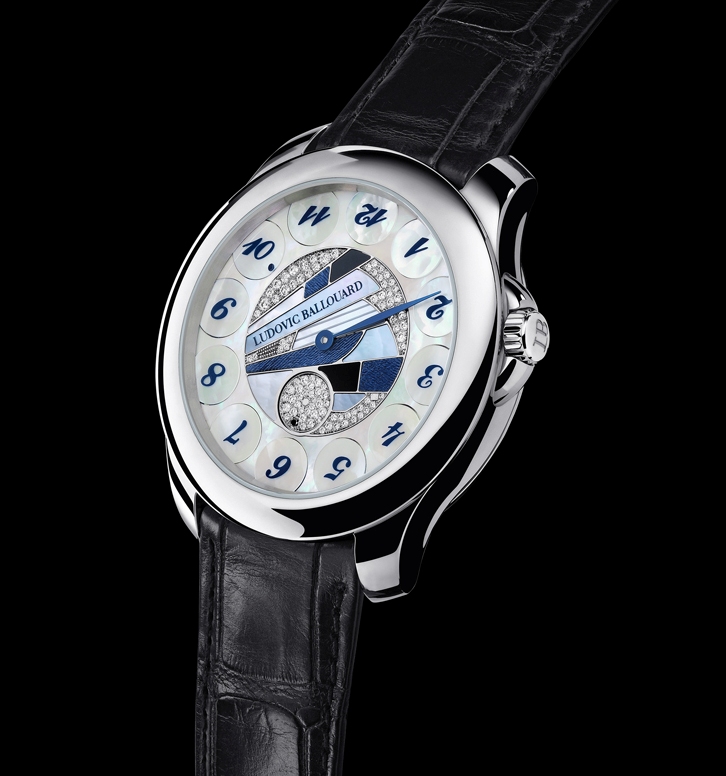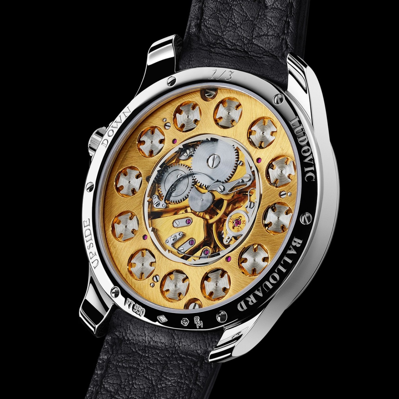 Французская часовая компания Ludovic Ballouard представила новую лимитированную модель Upside Down ("Вверх Тормашками") Art Deco Watch in Platinum. Такое интригующее название связано с перевернутым отображением арабских цифр на циферблате, за исключением той из них, которая служит для указания нужного часа. Причем, для обеспечения максимально легкого считывания часов и более четкого контраста между цифрой обозначающей текущий час, и одиннадцатью другими перевернутыми цифрами, рядом с ней появляется синяя точка. Как только текущий час заканчивается, диск, на котором изображена цифра, производит полуоборот и цифра переворачивается "вверх тормашками" (при этом синяя точка скрывается под ободком над диском). Одновременно диск с перевернутой цифрой следующего часа также производит полуоборот, и рядом с ней появляется синяя точка.