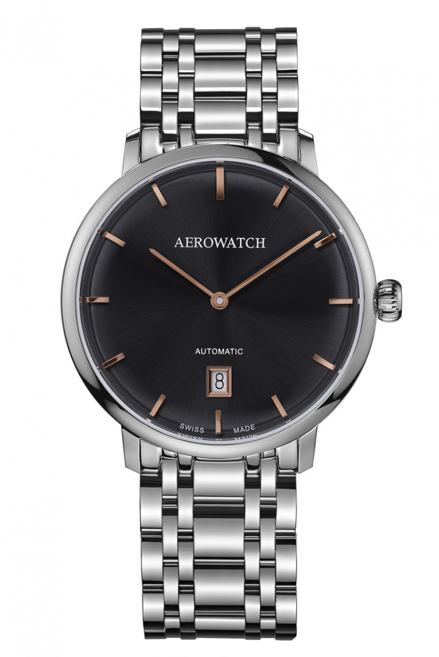 Дизайн новой модели Héritage Slim Automatik от швейцарской часовой компании Aerowatch выполнен в элегантном костюмном стиле. Новинка выпускается в семи различных вариантах, в том числе в нержавеющей стали, в позолоченной стали, с с серебристым или с антрацитовым циферблатом.