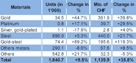 Похоже, часовая отрасль медленно, но верно возвращает утраченные за время кризиса позиции. Если верить данным, представленным Швейцарской федерацией часовщиков, в марте этого года импорт швейцарских часов вырос на 32.8% до 1,2 млрд. франков. Звучит неплохо! Тем более, с учетом того, что за первый квартал 2010-го года показатели повысились 16.6% и вернулись на уровень 2007-го года.