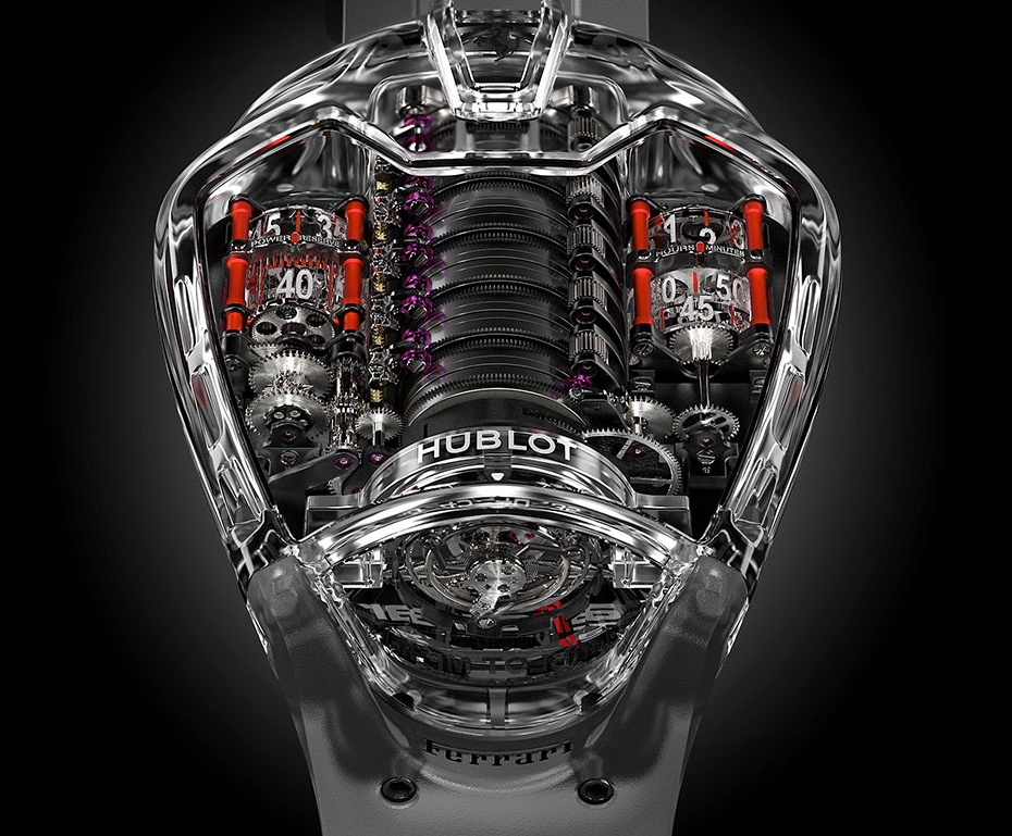 Если оригинальный дизайн MP-05 “LaFerrari” был создан с целью продемонстрировать сногсшибательный механизм часов с рекордным запасом хода, то новая версия модели за счет прозрачного сапфирового корпуса обеспечивает возможность потрясающего панорамного обзора «модельной» начинки, создавая ощущение, что механизм буквально парит в воздухе. Футуристичный образ часов – продукт совместного сотрудничества специалистов Hublot и легендарного дизайнера Ferrari Флавио Манцони (Flavio Manzoni). Что касается механизма, он от первой до последней детали создан на мануфактуре Hublot. Впервые представленная в 2013 году, модель MP-05 LaFerrari стала квинтэссенцией часовых рекордов. Часы демонстрировали сногсшибательный запас хода 50 дней за счет особой конструкции механизма с 11 вертикально расположенными заводными барабанами, а механизм модели насчитывал рекордное на сегодняшний день количество деталей, которое когда-либо было использовано для создания часового механизма Hublot – 637. Модель MP-05 “LaFerrari” Sapphire – очередная премьера в истории марки Hublot. На создание полностью прозрачного корпуса часов ушло 18 месяцев разработок, в результате которых MP-05 “LaFerrari” Sapphire получила достойное оформление своей авангардной концепции. Процесс превращения 7 сапфировых блоков в единую конструкцию весом 53,5 граммов потребовал более 600 часов работы. Как и в первой версии часов, механизм HUB9005.H1.PN.1 собран из 637 деталей и снабжен вертикально ориентированным турбийоном. На каретке турбийона закреплен прозрачный цилиндр с малой секундной стрелкой. Часы и минуты считываются на цилиндрах, расположенных с правой стороны, а на цилиндрах слева отображается информация о запасе хода. Эффектный дизайн модели дополняет прозрачный силиконовый ремешок с сапфировой застежкой. Отдавая должное ультрафутуристичному облику часов, разработчики снабдили модель оригинальным механизмом подзавода, который активируется при помощи автоматической отвертки. Тираж модели ограничен 20 экземплярами. Видеоролик о модели см. здесь. Вложение 1519715Вложение 1519716Вложение 1519717Вложение 1519718 Источник: http://watch.by/hublot-mp-05-laferrari-sapphire |