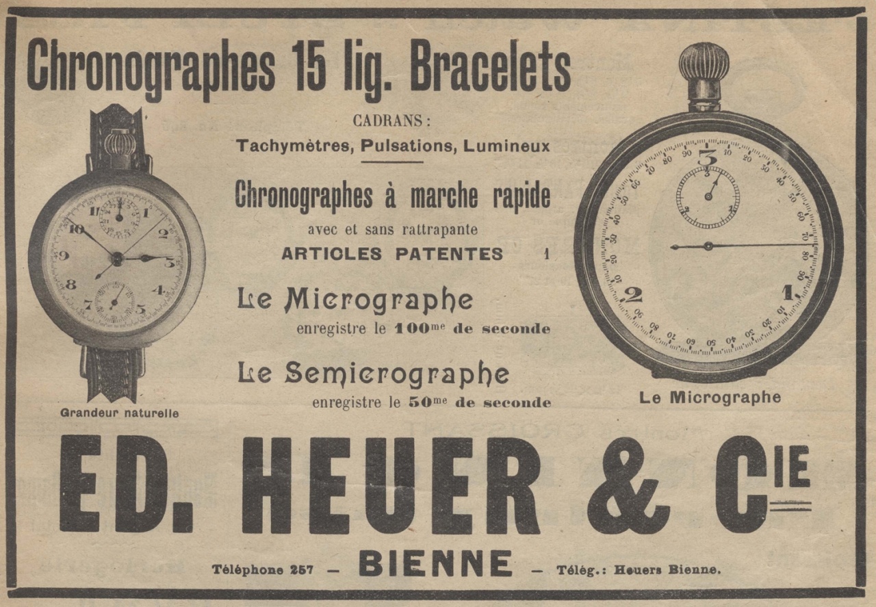 Выпущенный в 100 экземплярах, хронограф TAG Heuer Carrera Mikrograph выполнен в классическом стиле: белый лакированный циферблат, нарисованная разметка и дизайн, позаимствованный у винтажных спортивных хронометров. Эти часы с корпусом Carrera легко трансформируются в настольные (подставка поставляется в комплекте) либо могут фиксироваться на приборной панели автомобиля. TAG Heuer Carrera Mikrograph демонстрирует все преимущества сочетания революционной технологии и функционального дизайна приборов для спортивного хронометража, выпускавшихся в 20-х годах прошлого века. Точные. Легко читаемые. Надежные. Расположение элементов управления в этих часах – массивная рифленая заводная головка на 12 часах и кнопки-грибочки по бокам – напоминает первые секундомеры производства компании Heuer. Если быть точнее, белый лакированный циферблат, нанесенные черной краской часовые метки и винтажный логотип Heuer вкупе с надписью «Made in Switzerland» фотографически точно воспроизводят облик исторической модели Mikrograph 1916 года выпуска. Часовая и минутная стрелки хронографа имеют форму листьев, характерную для часов из ревущих 20-х, а выполненные из вороненой стали стрелки на счетчиках и центральная секундная стрелка с противовесом каплевидной формы подчеркивают спортивный характер часов. Практично и при этом не лишено особого шарма с легким оттенком ретро. Вложение 1522756Вложение 1522754 Вложение 1522755 Вложение 1522752Вложение 1522753 Mikrograph 1916: гонка со скоростью 1/100 секунды Все началось с задачи, поставленной дальновидным начальником команде талантливых инженеров. В 1914 году сын Эдуарда Хойера, Шарль Огюст потребовал от своих рабочих создать «измерительный прибор, который был бы в 5-10 раз точнее всего, что существует на данный момент». В то время гонка за точностью в области спортивного хронометража особенно интенсивно набирала обороты. Видимо, желание стать лидером этой гонки серьезно подстегнуло творческий процесс. Уже через год на свет появился первый прототип суперприбора, который превзошел все ожидания заказчика – колебательная система хронографа работала с частотой 360 000 пк/час, что эквивалентно точности хода 1/100 секунды. Механизм хронографа был защищен 2 патентами сроком на 20 лет. Параллельно команда Шарля-Огюста Хойера работала над созданием секундомера с точностью показаний 1/50 секунды. Так, в 2016 году были выпущены Mikrograph, Microsplit, Semikrograph et и Semicrosplit – первые механические счетные приборы, измерявшие время с точностью 1/50 и 1/100 секунды. Революционный характер изобретений способствовал серьезному повышению позиций Heuer в часовой индустрии: компания стала официальным поставщиком хронографов для Олимпийских игр в Антверпене (1920), Париже (1924) и Амстердаме (1928). Mikrograph, находившийся в производстве до 1969 года, был настолько точен, что его использовали даже на соревнованиях по бобслею и собачьих бегах. Вложение 1522757 Вложение 1522758 Реклама модели Mikrograph, 1922 год Сердце юбилейных TAG Heuer Carrera Mikrograph бьется в бешеном ритме мануфактурного механизма, презентация которого состоялась в 2011 году. Защищенный 11 патентами калибр представляет собой конструкцию из 480 компонентов, в составе которой имеется сразу 2 механизма с отдельным заводным барабаном и колебательной системой на каждый. Первый механизм обслуживает часовую составляющую модели (часы, минуты, малая секунда, дата), работает с частотой 28800 пк/час и