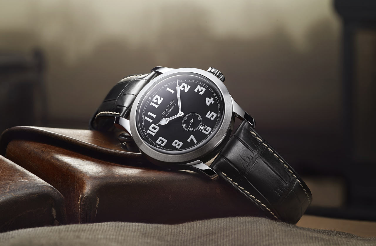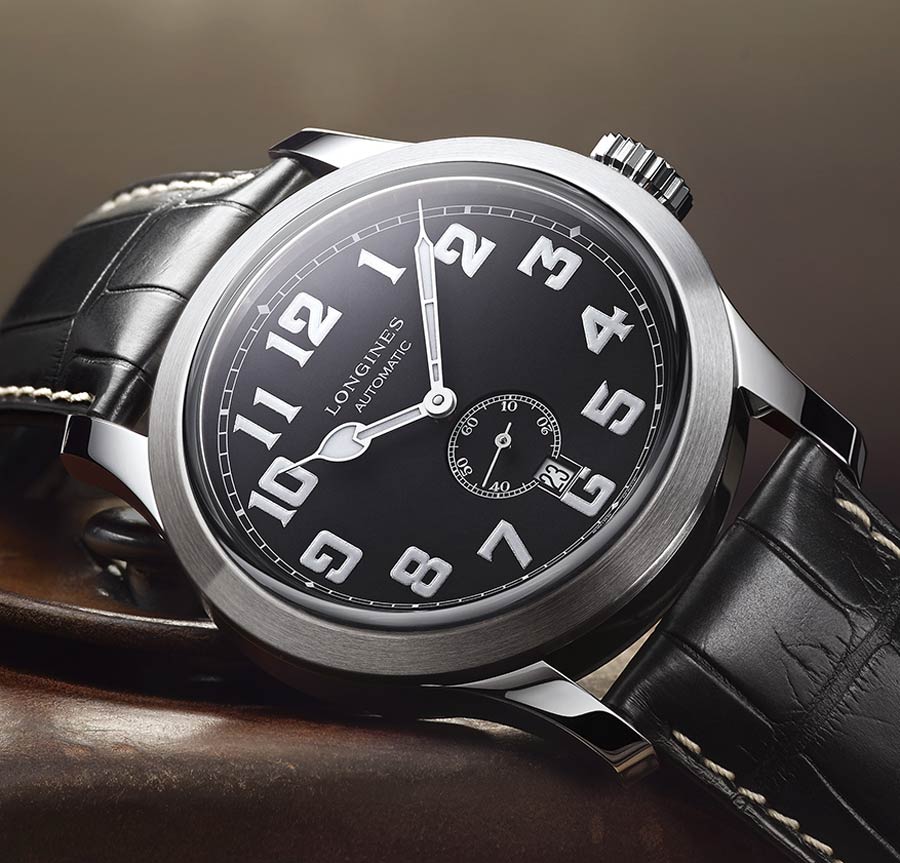 Новинка имеет круглый корпус с сатинированными и полированными поверхностями, изготовленный из нержавеющей стали, диаметром 44,0 мм, водонепроницаемый до 30 метров. На торце рифленой заводной головки, расположенной на 3 часах, выгравирована эмблема бренда Longines. Сапфировое стекло с антибликовым покрытием защищает циферблат матово-черного цвета, с крупными арабскими цифрами, часовыми индексами, часовой и минутной стрелками, покрытыми люминесцентным составом Super-LumiNova белого цвета. Круглая минутная шкала, расположенная на периферии циферблата, выполнена в виде железнодорожного полотна. Модель оснащена швейцарским автоматическим механизмом Longines L615.3 (базовый калибр ETA 2895/2), с балансовой частотой 28800 полуколебаний в час (4 гц), 42-часовым запасом хода, функциями индикации часов, минут (посредством соответствующих центральных стрелок), секунд (на соответствующем малом боковом циферблате, расположенном на 6 часах) и даты (посредством соответствующего цифрового указателя в прямоугольной апертуре, расположенной на 6 часах). Поставляется на черном ремешке из кожи аллигатора с застежкой из нержавеющей стали. Цена модели Longines Heritage Military составляет 1720 евро. Вложение 1524923Вложение 1524924 Вложение 1524925 Модель Longines 1918 года выпуска, дизайн циферблата которой послужил прототипом циферблата новинки. Источник: http://www.timeandwatches.com/2016/0...-military.html |