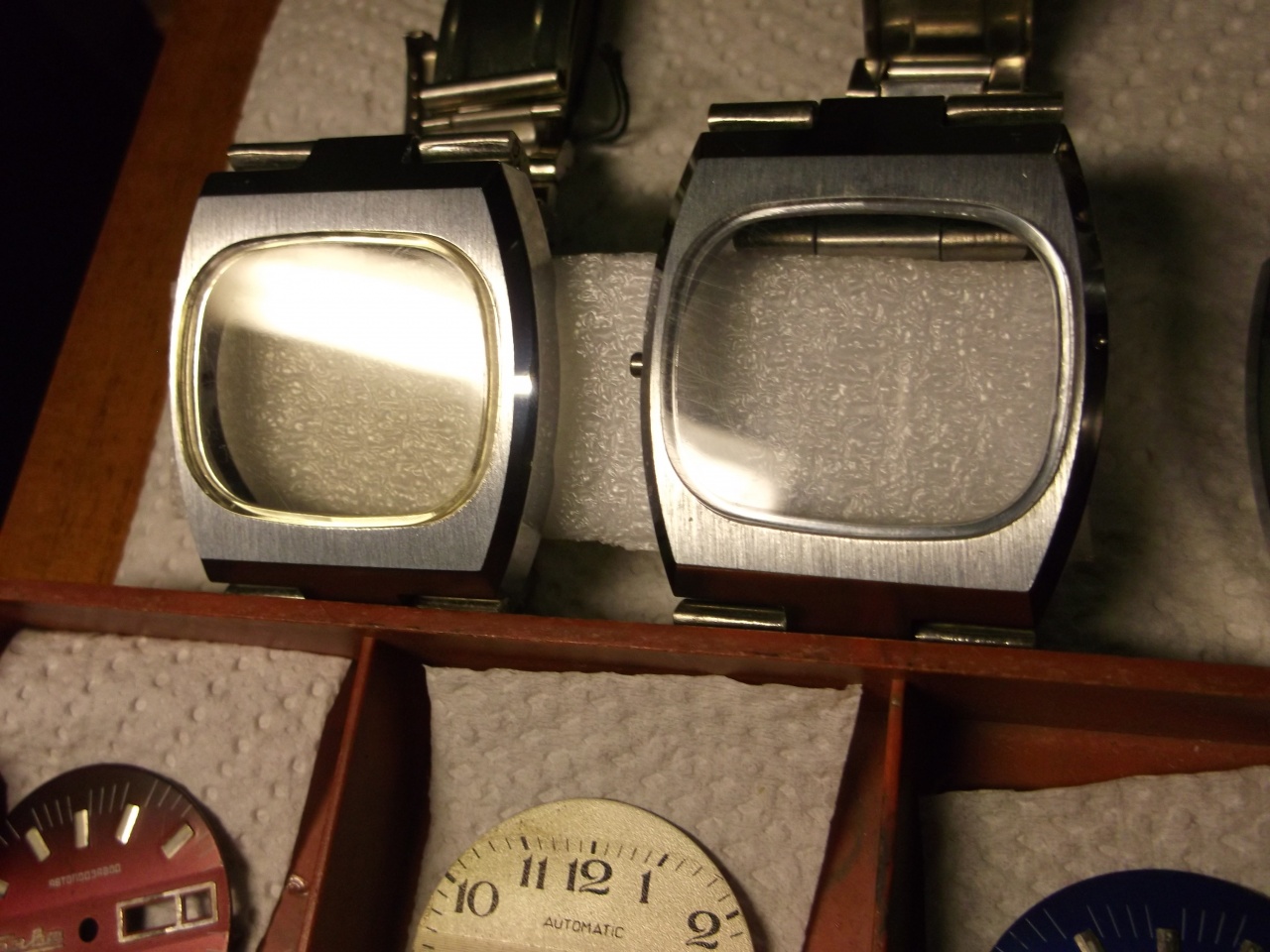 ваши корпуса и браслеты интересны сохранностью. К сожалению качество хромирования этих часов было крайне низкое и в процессе носки очень сильно царапались и обтирались за первые месяцы. В результате до нашего времени в хорошем сохране этих часов дошло мало. |