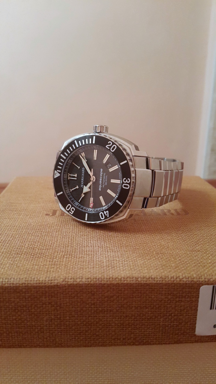 Пол: мужские Год покупки: 2016 Новые часы, состояние: N (новые в пленках) http://forum.watch.ru/images/market-question.png Цена: 85 000 руб. (продажа) Коробка: есть Документы: есть http://forum.watch.ru/attachment.php...0&d=1324048059 В продаже роскошные брутальные дайверские часы от швейцарской мануфактуры JeanRichard http://www.ashford.com/images/catalo...01-11A_FLA.jpg Технические характеристики: Механизм: JR60, автоподзавод Размер механизма: 11 ½’’’ Частота: 28,800 vibrations/ hour (4 Hz) Кол-во камней: 26 Запас хода: 38 часа Функции: Часы, минуты, секунда, дата. Стоп-секунда. Размер корпуса: 44мм Толщина: 13 мм Размер браслета\ремешка: 24мм Водонепроницаемость: 300м, завинчивающаяся головка На циферблате накладные часовые метки и стрелки с родиевым покрытием Сапфировое стекло с внутренним антибликом. Эффект отсутствия стекла Почитать о марке в целом, обсудить Общее впечатление: Тактильно очень впечатляет, не хочется их выпускать из рук . Великолепная отделка корпуса, очень необычный и красивый, с сатинироваными звеньями, но с полированными гранями между звеньев, поэтому красиво поблескивает на свету. Циферлат - Цвет антрацитово-черный с текстурным рисунком. Цвет цифера меняется в зависимости от падающего света, На цифере накладные часовые метки с родиевым покрытием и люминесцентными элементами. Считываемость времени отличное, все очень контрастно, на цифере ничего лишнего. Безель дайверский, с разметкой, односторонний, с хорошо чувствующимися щелчками. Очень хороший люм, светится голубовато-зеленоватым цветом, причем при небольших сумерках. Задняя крышка завинчивающаяся, с логотипом JR. Сам корпус - сложный, состоящий из разных частей, напоминает подушку от Panerai, но при этом есть свои особенности в виде отдельной пластины под безелем. Часы хорошо сидят на запястье от 18 см. Полный комплект - Коробка, кожаный чехол для часов, плечевой ремень для чехла, часы в пленках, гарантийная карточка, бирки. Ритейл часов у официальных дилеров - $3800 Часы находятся в Санкт-Петербурге! Возможна отправка по РФ курьерской службой КСЕ до двери входит в стоимость! Отзывы обо мне можно почитать в соответствующей теме: Отзывы покупателей - Отзывы о часовых магазинах Фото сделаны на руке 18.5 см Вложение 1536871Вложение 1536872Вложение 1536873Вложение 1536874 |