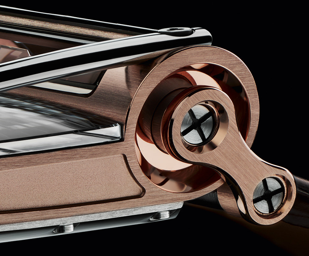 Если вы не особо разбираетесь в часах, а HM8 Can-Am первая модель MB&F, которую вам довелось видеть, то прямо сейчас она взорвет ваш мозг. Эти часы раздвинули грани, задали новое направление дизайна MB&F, поэтому являются важной вехой эволюции. Компания MB&F выпускает много сумасшедших часовых механизмов. Часто кажется, что они прибыли прямиком из научно-фантастического фильма и их даже сложно назвать часами в привычном понимании. За более чем 10 лет своего существования, MB&F неоднократно бросала вызов законам часовой индустрии и продолжает это делать сегодня. Новые уникальные часы MB&F HM8 Can-Am являются восьмым членом семейства Horological. Они представляют собой следующую ветвь дизайна после модели HMX, выпущенной в 2015 году в честь десятой годовщины бренда, что объясняет литеру X в названии. Очевидно, модели HM7 в семействе Horogical нет. Что касается второй части имени, Can-Am, то она отсылает к теме дизайна. Can-Am – это сокращение от Challenge Cup – канадо-американская автомобильная гоночная серия, существовавшая в 1966 – 1987 годах. Дизайн часов вдохновлен каркасом безопасности, являющимся обязательным элементом пассивной безопасности для гоночных авто. Каркас у MB&F HM8 Can-Am не просто металлический, а титановый. Корпус часов многосоставной и невероятно сложный. В общей сложности он состоит из 60 компонентов из золота, титана и сапфирового стекла. Прямым же предшественником дизайна HM8 Can-Am является водительская модель HM5, представленная в 2012 году. Уникальной особенностью HM5 в свое время стал повернутый циферблат, что позволяет считывать время, не отрывая руку от руля во время вождения автомобилем. Подобно HM5, в конструкцию часового механизма HM8 входит два циферблата. Повернутый циферблат отведен для часов и минут, отображающих время под выпуклой линзой для увеличения показаний. Основной циферблат часов выполнен в стиле скелетонов под сапфировым стеклом. Часовой механизм модели MB&F HM8 Can-Am состоит из 247 компонентов. Запас хода новинки равен 42 часам. Задняя крышка часов стилизирована под моторный отсек гоночного автомобиля. К продаже подготовлено две версии модели: из розового золота и титана, а также из белого золота и титана. Уникальные часы MB&F HM8 Can-Am удовольствие не из дешевых – 82 000 долл. за штуку. Видеоролик о MB&F HM8 Can-Am см. здесь. Вложение 1539681Вложение 1539682Вложение 1539683Вложение 1539684Вложение 1539685Вложение 1539686Вложение 1539687Вложение 1539688Вложение 1539689Вложение 1539690Вложение 1539691Вложение 1539692Вложение 1539693Вложение 1539694Вложение 1539695Вложение 1539696 Источник: http://bigbucks.com.ua/watch/hm8-can...ufaktury-mb-f/ |