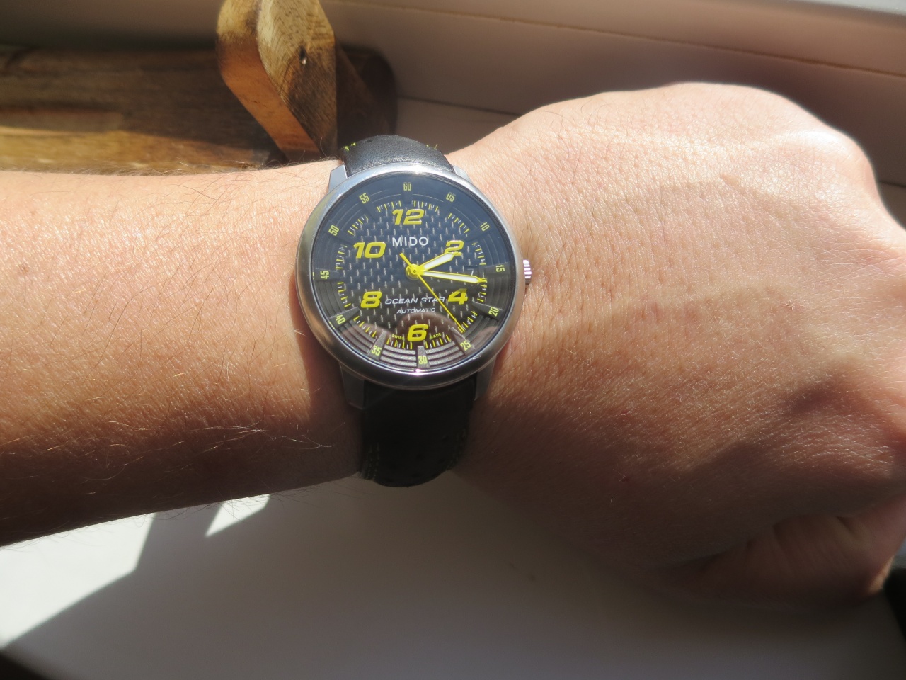 ДРАЙВ-СПОРТ часы от MIDO, просто чумовые часы в гоночном стиле, цифер - КАРБОН. Цена подарок.