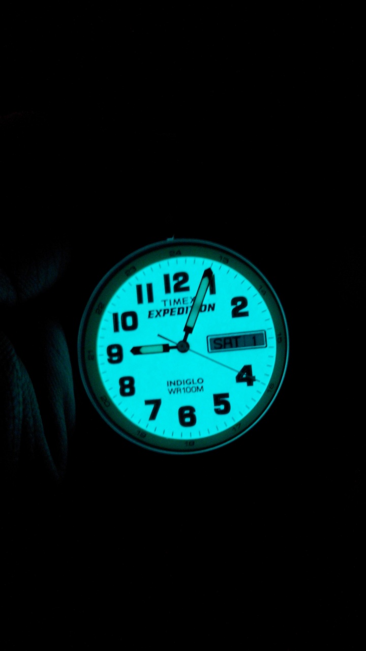 Сами часы небольшие 40.5х46,5х10мм, на мои 18 см смотрятся вполне нормально. Корпус матово-серебристый, к сожалению, не сталь. Латунь с покрытием. Судя по отзывам проблем нет. Водонепроницаемость WR100. Безель не крутится. Задняя крышка стальная. Стекло минеральное, утоплено в корпус. Циферблат легкого кремово-бежевого оттенка, очень приятный. Цифры черные, с объемной блестящей окантовкой. Вместо 3-х часов день недели и число. Стрелки люминесцентные, а так же точка на безеле над 12-ю часами. Ремешок 20мм шириной, кожаный. Мягкий и удобный. Бакля металлическая, матовая. Механизм, разумеется, кварц. Батарейку обещают на 5 лет. Ну и, разумеется, фирменная таймексовская подсветка Indiglo. При нажатии на головку подсвечивает циферблат классным бирюзовым цветом. PS: Брались на амазоне в штатах товарищем по смешной цене: https://www.amazon.com/Timex-EXPEDIT...eywords=t46681 Вложение 1543949 Вложение 1543950 Вложение 1543951 Вложение 1543952 Вложение 1543953 Вложение 1543954 Вложение 1543955 Вложение 1543956 |