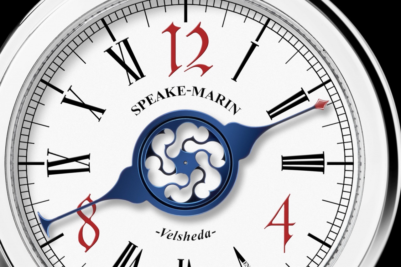 Новая лимитированная модель Velsheda Gothic Second Edition от швейцарской часовой компании Speake-Marin имеет круглый корпус с полированными и сатинированными поверхностями, изготовленный из титана, диаметром 42,0 мм, водонепроницаемый до 30 метров. Крупная рифленая заводная головка конусовидной формы, расположена на 3 часах. Сапфировое стекло установлено на передней стороне часового корпуса (с антибликовым покрытием) и на его завинчивающейся задней крышке. Белый эмалевый циферблат с выполненными в готическом стиле красными арабскими цифрами "12", "4" и "8"; остальные часовые маркеры - в виде традиционных черных римских цифр (интересно отметить, что на цифру V нанесена микро-надпись "enamel"). Минутная шкала выполнена в стиле железнодорожного полотна. Модель оснащена швейцарским автоматическим механизмом Vaucher 3002, на 28 камнях, с балансовой частотой 28800 полуколебаний в час (4 гц), 50-часовым запасом хода, функциями индикации часов (посредством соответствующей вороненой центральной стрелки) и секунд (в виде фигурного указателя, вращающегося вокруг центральной оси). Калибр отделан и декорирован вручную.