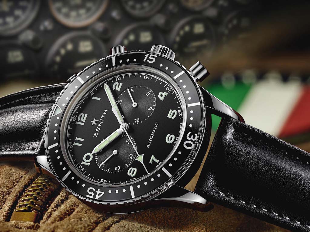 Еще в шестидесятых годах прошлого столетия, итальянское военное ведомство выбрало часы Zenith в качестве табельных для пилотов военно-морского флота и военно-воздушных сил. После поставки через дистрибьютора "А. Cairelli" 2500 хронографов Zenith Cronometro TIPO CP-2 (с корпусом диаметром 43 мм, с двумя счетчиками на 3 и 9 часах), ими до конца 1970-ых годов обеспечивались итальянские летчики самолетов U.S. Lockheed F104 Starfighter. В настоящее время швейцарская часовая компания Zenith представила лимитированную современную версию этой исторической модели - Heritage Cronometro TIPO CP-2 (Ref. 03.2240.4069/21.C774).