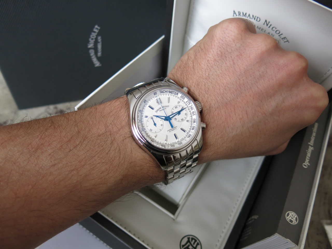 ШИКАРНЫЙ МУЖСКОЙ ХРОНОГРАФ ARMAND NICOLET M02 СТАЛЬНОЙ БРАСЛЕТ БЕЛЫЙ ЦИФЕР СИНИЕ ВОРОНЕНЫЕ СТРЕЛКИ