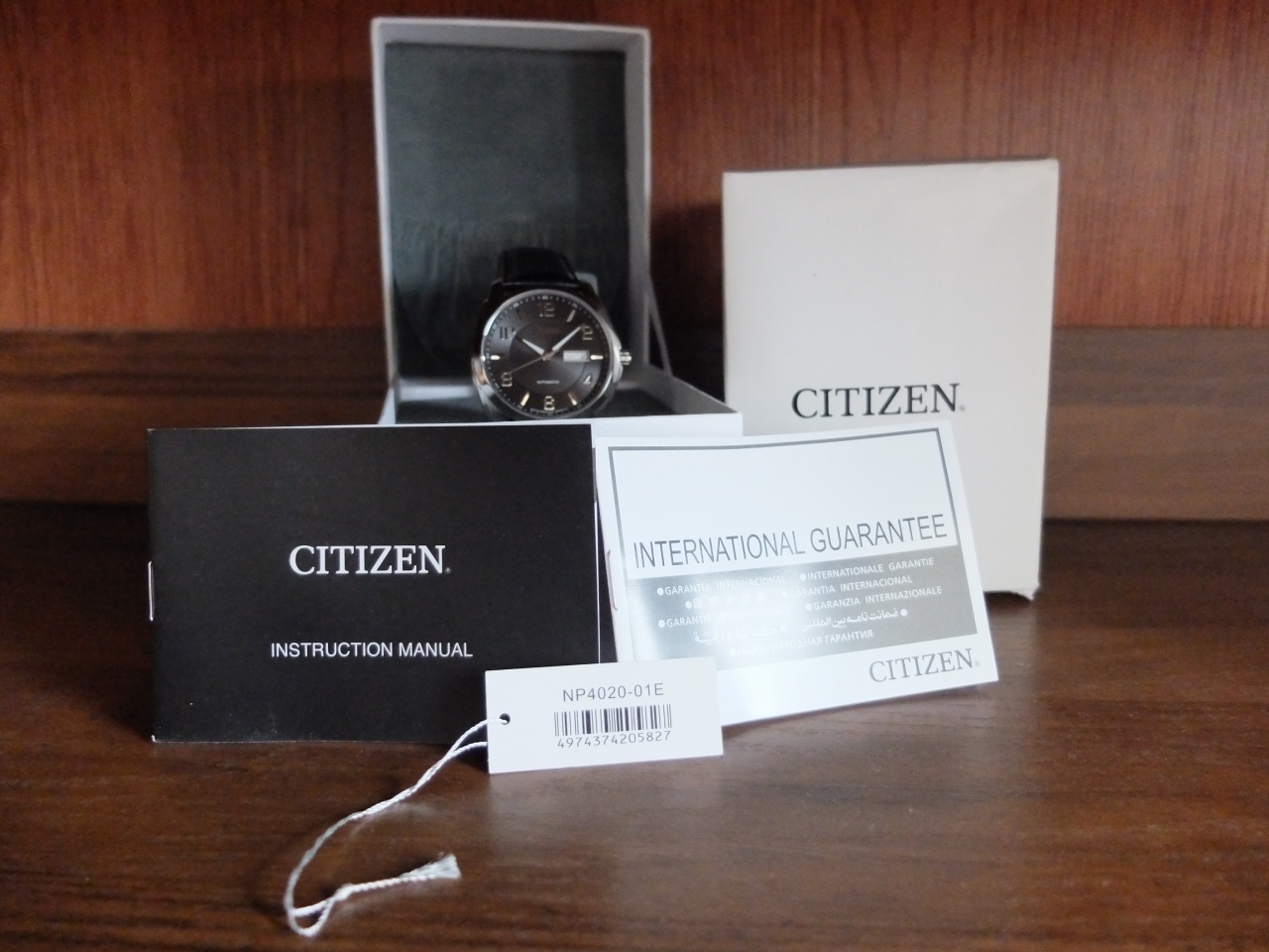 Механика Citizen NP4020-01E (42мм, день-дата, черный циферблат, сапфир, made in Japan)