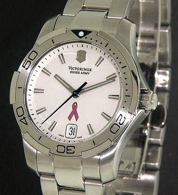 В коллекции Victorinox Swiss Army появились эксклюзивные часы в поддержу женщин, больных раком груди. 10 % от каждой продажи этих часов будут пожертвованы в фонд Susan G. Komen for the Cure.