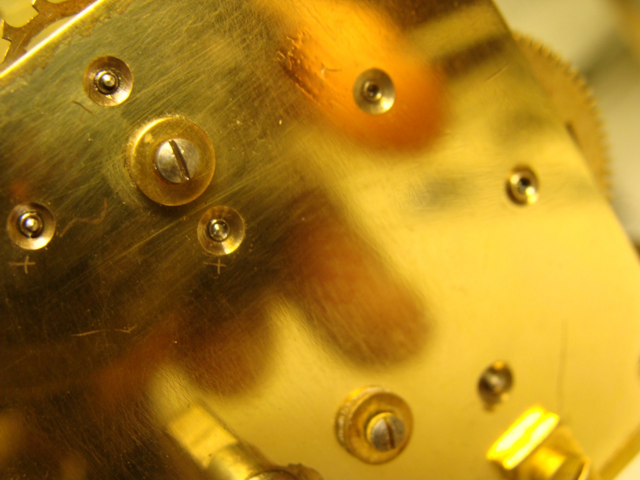 Мне принесли часы ,которые стояли дома около двадцати лет,как говорит хозяин. Но так толком и не ходили. Пока не оборвался торсион. Я обнаружил ,что все ,абсолютно все отверстия бушонированы но излишки вставки не удалены и масленка не сформирована . Причем все отверстия откалиброваны идеально. В результате ,после полного обслуживания механизма,скат колесной очень слабый. Слишком большие потери на трение в цапфах. Излишки бушонов удалены и все сразу изменилось. Вложение 1610768 Вложение 1610769 |