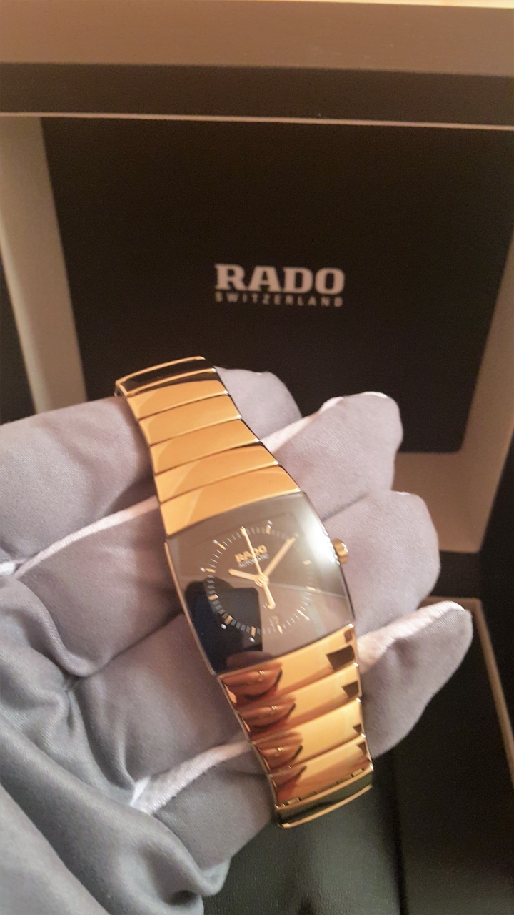 Пол: женские Год покупки: 2016 Новые часы, состояние: N (новые в пленках) http://forum.watch.ru/images/market-question.png Цена: 75 000 руб. (продажа) Коробка: есть Документы: есть http://www.pam65.ru/brand_p/1480001e119.gif В продаже абсолютно новые шикарные женские часы RADO Sintra Часы сделаны на основе высокотехнологичной керамики золотого цвета http://www.ashford.com/images/catalo...881172_FXA.jpg Технические характеристики: Механизм: механические с системой автоматического подзавода Корпус: устойчивая к царапинам высокотехнологичная керамика Ceramos Размеры: 27Х36 мм Циферблат: часы, минуты, секунды, дата, позолоченные часовая и минутная стрелки, подвижная эмблема якоря на 6 часах Толщина: 11 мм. Стекло: сапфировое, устойчивое к царапинам Браслет: устойчивая к царапинам высокотехнологичная керамика, титановая застежка-бабочка. Водозащита: 30 м. Для производства часов Rado используются только лучшие материалы. При этом одной только прочности недостаточно: не менее важны инновационность, надежность и комфорт ношения. В 1986 году инженеры Rado впервые использовали высокотехнологичную керамику – материал, который соответствует всем этим требованиям. С тех пор высокотехнологичная керамика стала ключевым компонентом часов Rado. Она износостойкая и универсальная: блестящее металлическое и матовое покрытие, мерцающие шелковистые или покрытые орнаментом поверхности – возможно все и в самых разных цветах. Часы Sintra R13881172 сделаны из Ceramos™ Ceramos™, материал, созданный на основе высокотехнологичной керамики золотого цвета, был представлен Rado в 1993 году. Он создан из высокотехнологичной керамики и металлического композита и объединяет в себе лучшие свойства обоих компонентов. Ceramos™ легок и быстро адаптируется к температуре тела и поэтому обеспечивает непревзойденный уровень тактильного комфорта, выступая в качестве материала для часовых браслетов и корпусов. Часы великолепно смотрятся на женской руке и привлекают внимание! Шикарный подарок для любимой или для себя! Полный комплект - 2 коробки, инструкции, мягкая салфетка, гарантийная карта, все бирки, Рекомендованная стоимость в России - 188 000 руб. Часы в наличии в Санкт-Петербурге, быстрая отправка с курьерской почтой в любой город за 1-3 дня. Отзывы обо мне можно почитать в соответствующей теме Отзывы покупателей - Отзывы о часовых магазинах Вложение 1615579Вложение 1615580Вложение 1615581Вложение 1615583 |